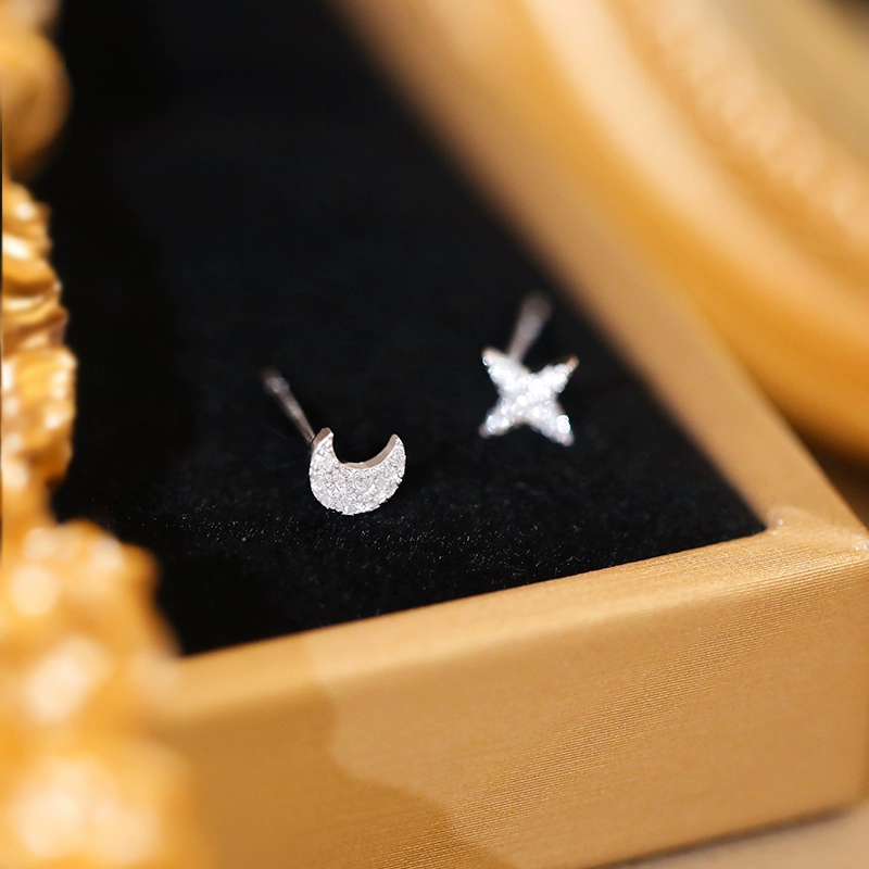 | nameOriginal | Korean style asymmetrical star and moon earrings 2024 new trendy ear piercing earrings female temperament small and fresh earrings sterling silver |