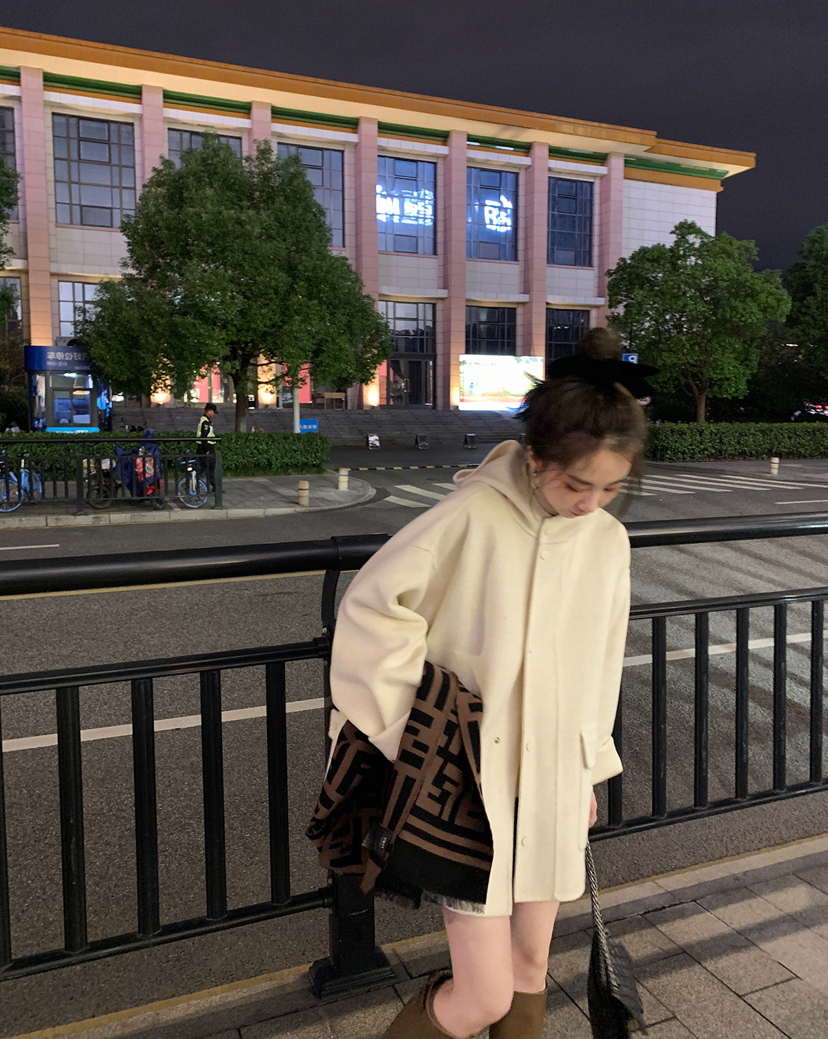 | nameOriginal | Korean style autumn and winter double-sided cashmere coat Women's Mid-length hooded loose small thickened woolen coat |