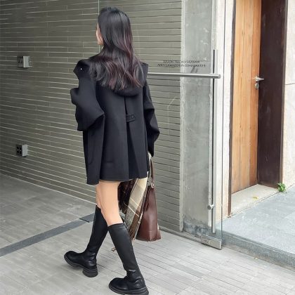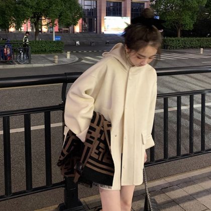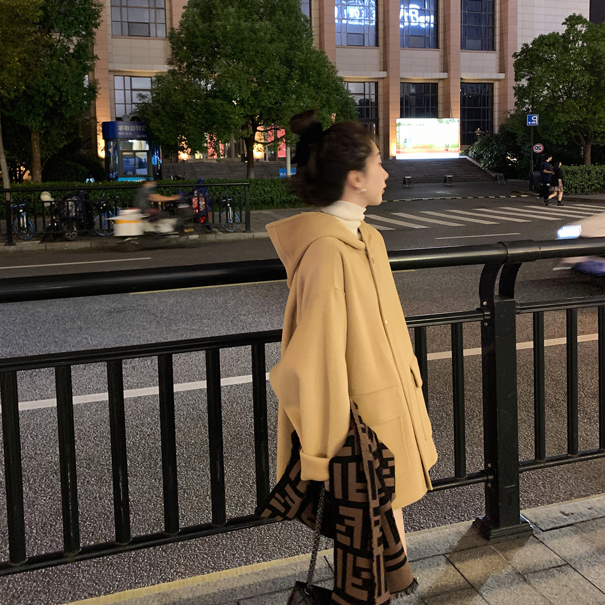 | nameOriginal | Korean style autumn and winter double-sided cashmere coat Women's Mid-length hooded loose small thickened woolen coat |