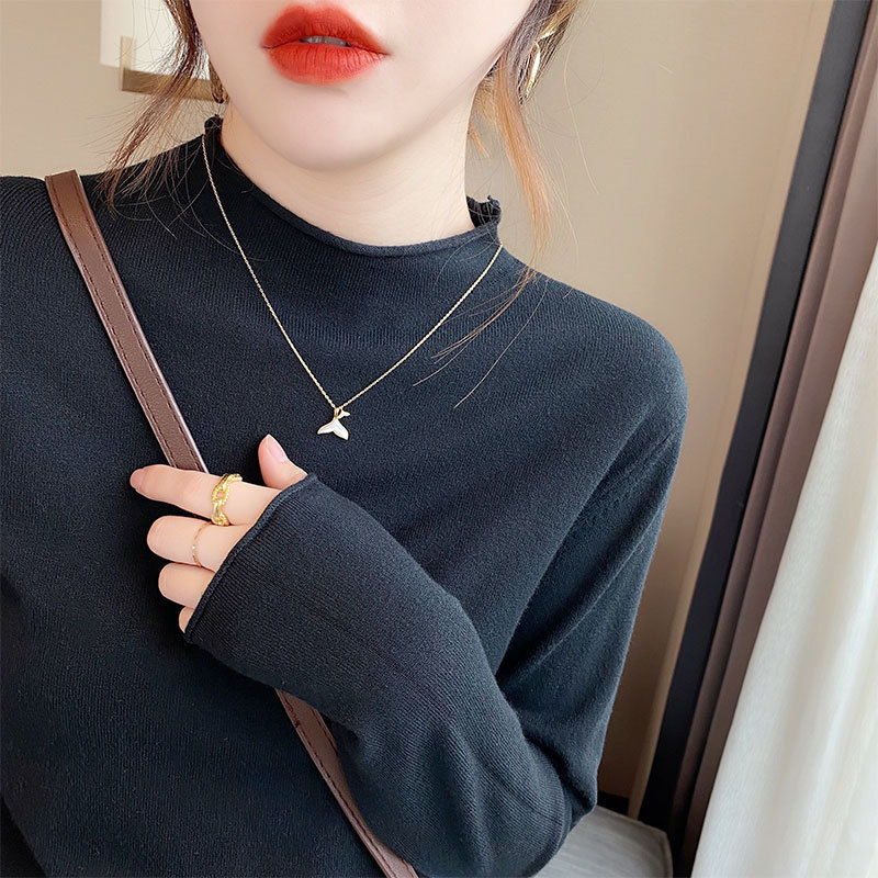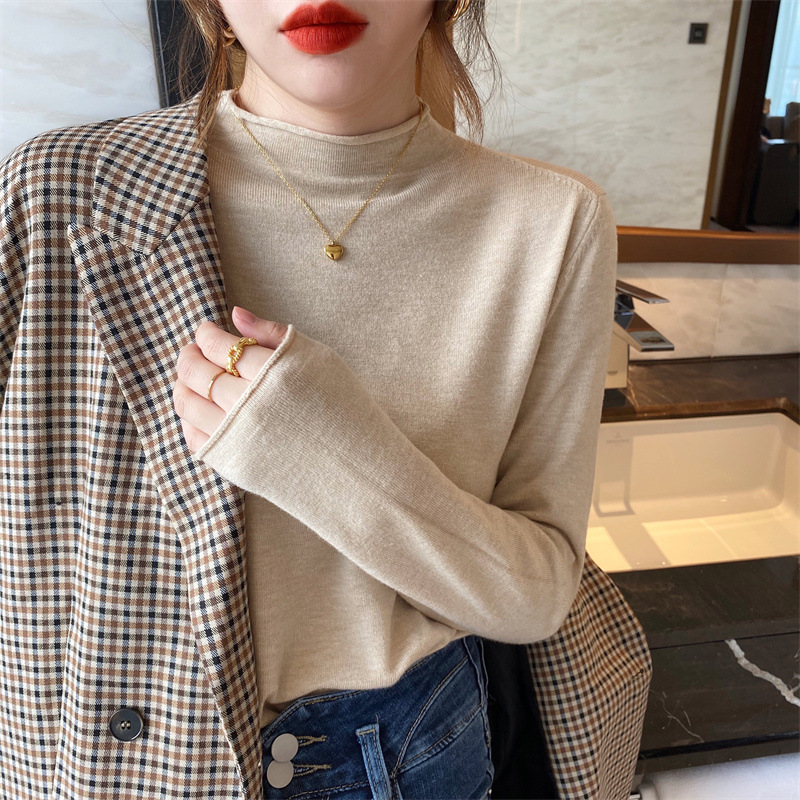 Korean Style Autumn and Winter Half High Neck Base Knit Sweater Women's Thin Western Style New Inner Sweater Long Sleeve Top for Outer Wear