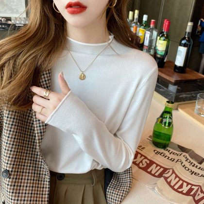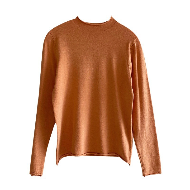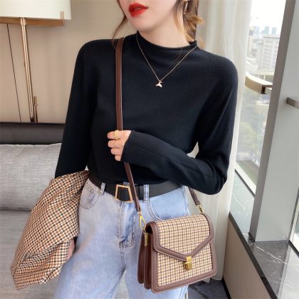 Korean Style Autumn and Winter Half High Neck Base Knit Sweater Women’s Thin Western Style New Inner Sweater Long Sleeve Top for Outer Wear