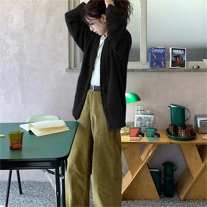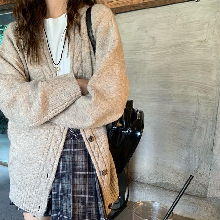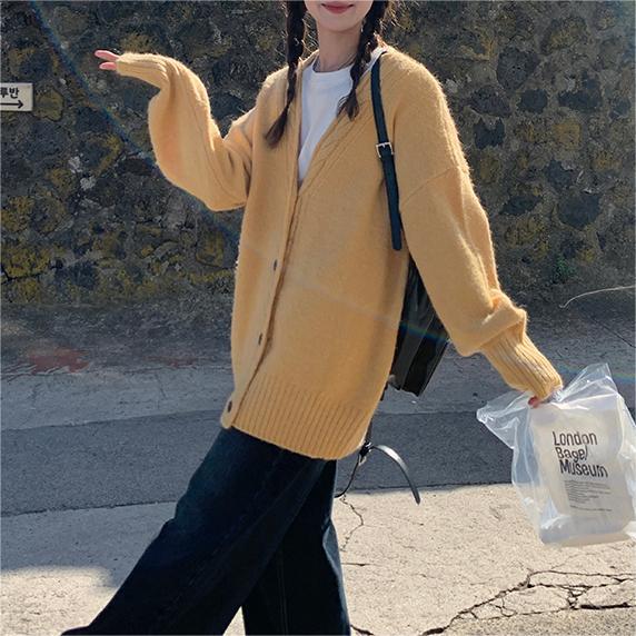 | nameOriginal | Korean style autumn and winter New lazy style four-color twist placket knitted cardigan loose solid color soft glutinous V-neck coat for women |