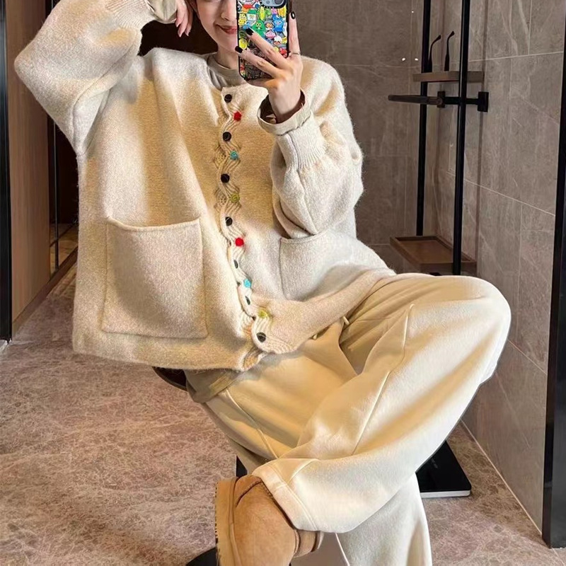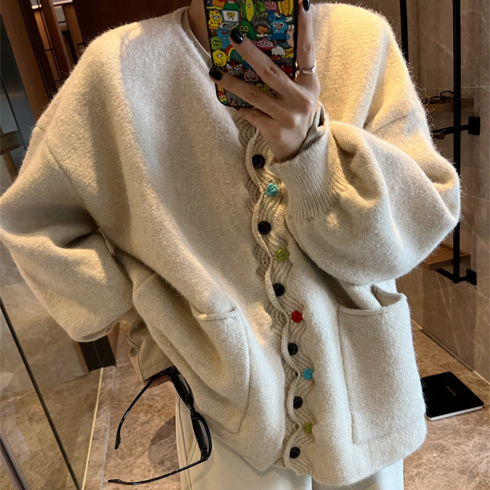 | nameOriginal | Korean style autumn and winter New retro handmade hook flower knitted cardigan women's loose design lazy style sweater cardigan |