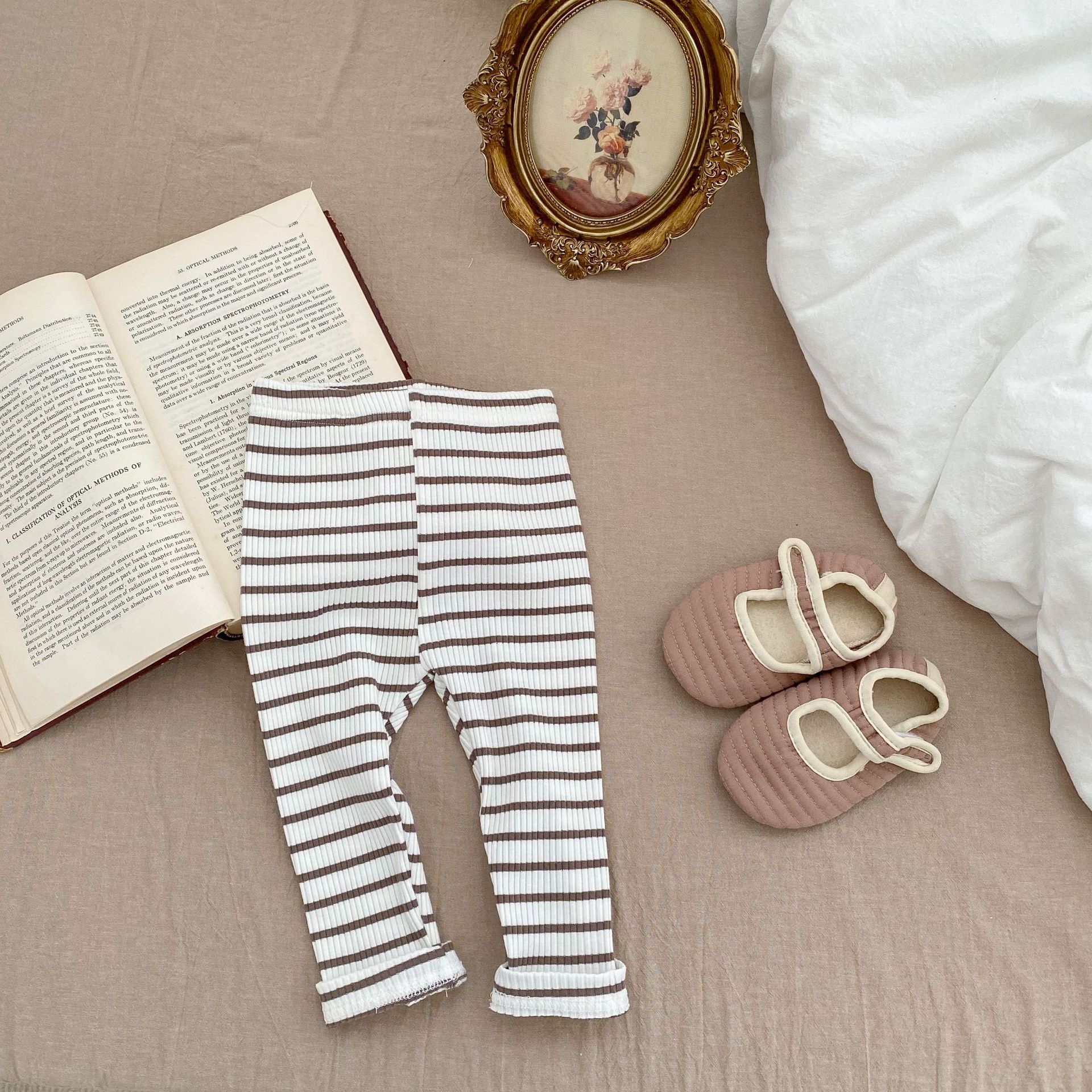 Korean Style Baby Leggings New Cotton Pit High Waist Trousers Baby Striped Casual Outer Wear Leggings