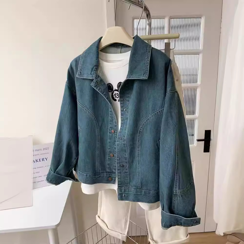 | nameOriginal | Korean style beige Denim coat! Spring and Autumn bright line design versatile slimming loose casual short jacket top for women |