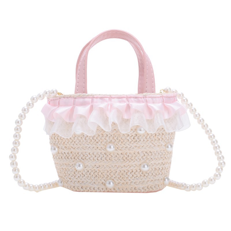 | nameOriginal | Korean Style Boys and Girls Shoulder Bag Western Style Lace Pearl Chain Children's Crossbody Bag New Straw Children's Bag |