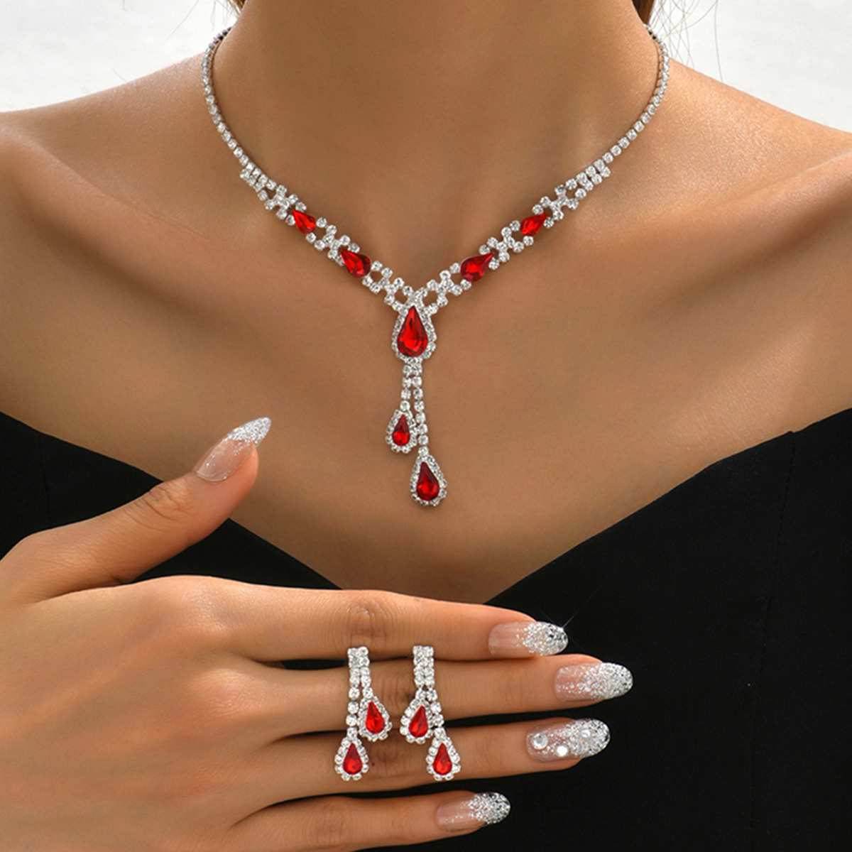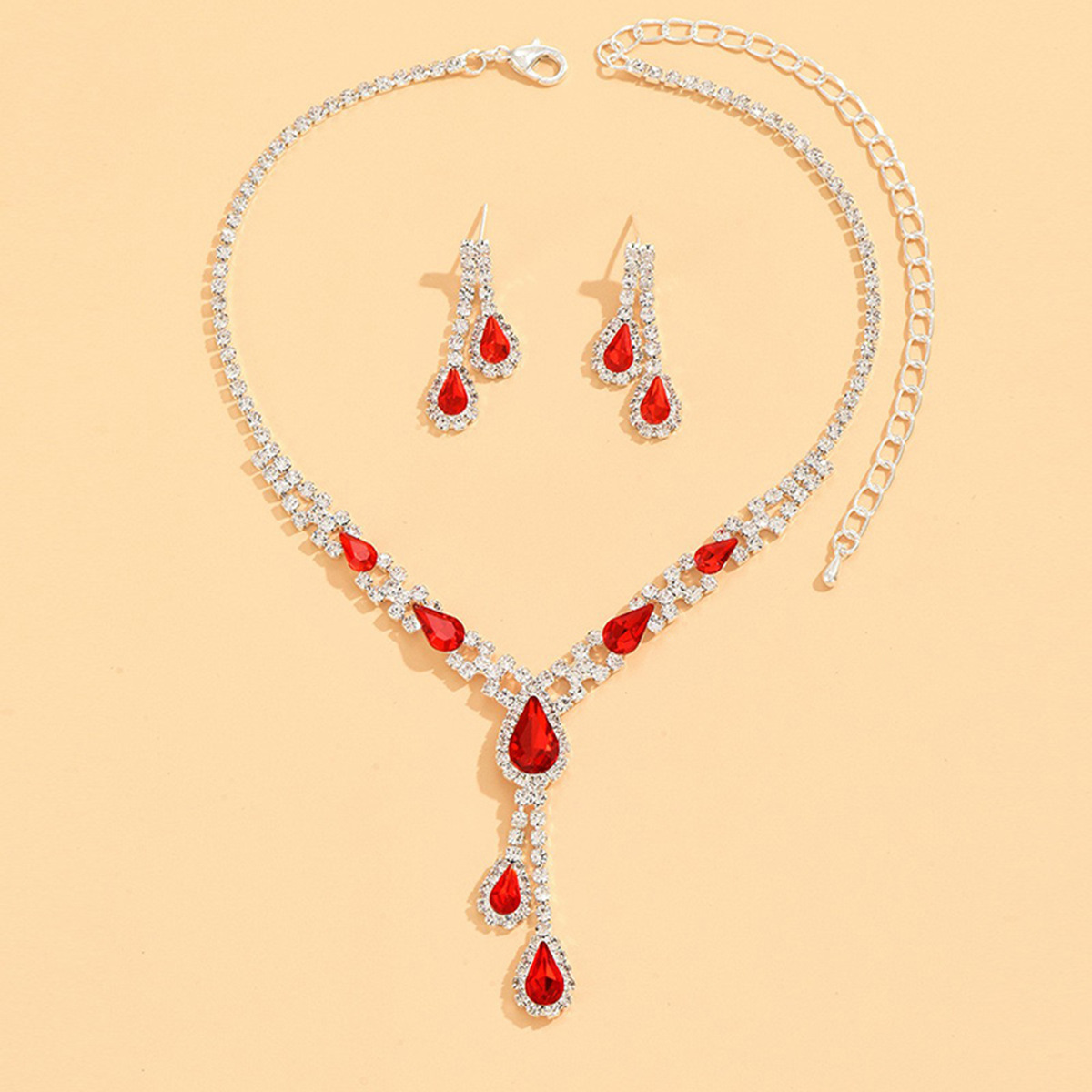| nameOriginal | Korean-style Bride Copper Diamond Water Drop Necklace Clothing Accessories Fashion All-match Red Jewelry Light Luxury Jewelry suit |