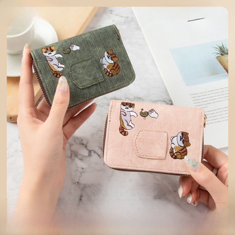 | nameOriginal | Korean Style Card Bag Women's Short Embroidered Cute Girl's Multi-Power Anti-Degaussing Student Folding Organ Small Credit Card Set Women |