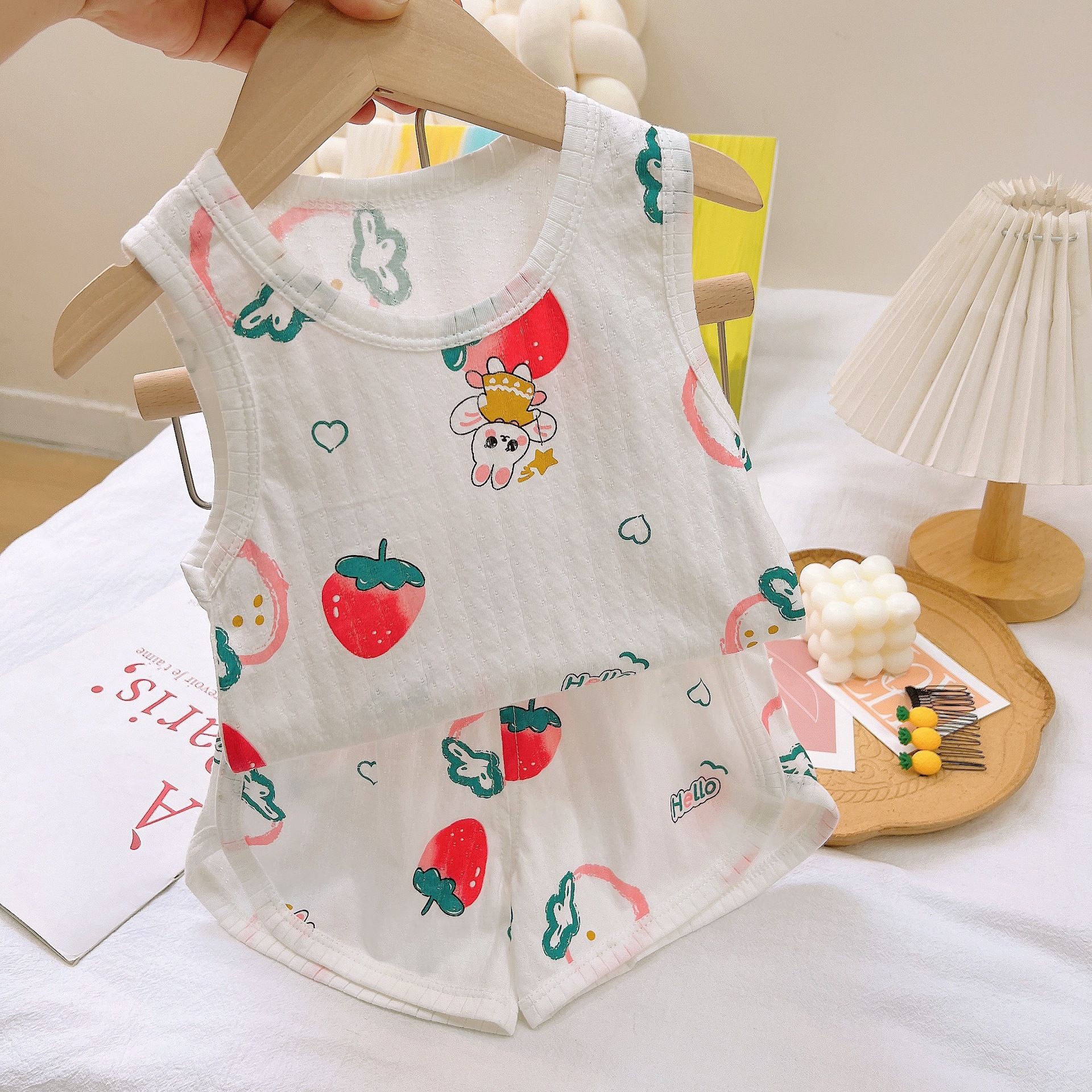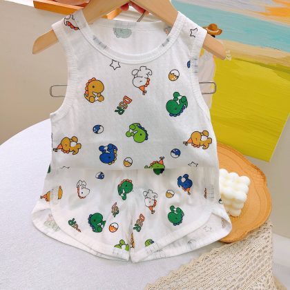 | nameOriginal | Korean-style Cartoon Two-piece Outfit for Boys and Girls Children's Vest suit Summer Thin Jacquard Cotton suit |