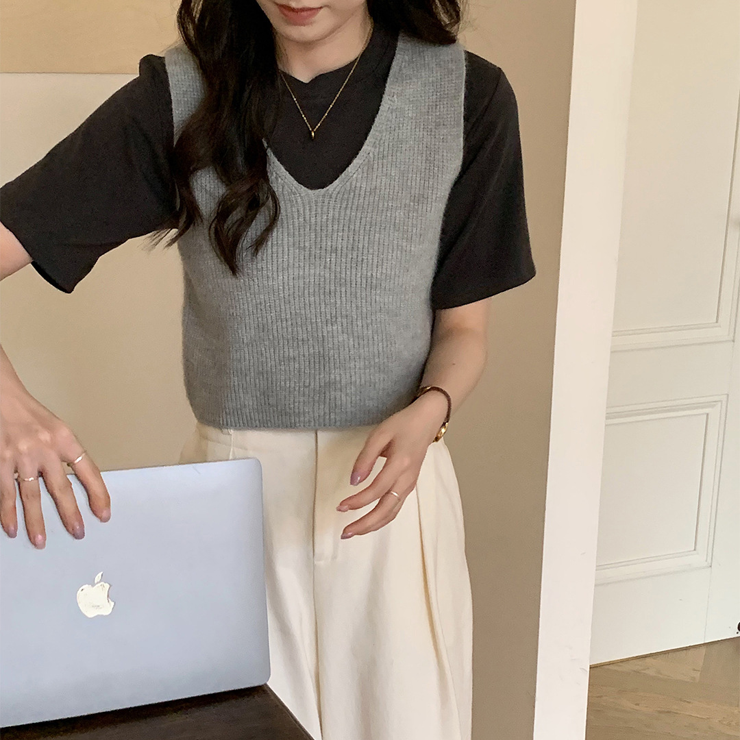 | nameOriginal | Korean Style Casual Short Stacked Sleeveless Sweater Vest Women's 2024 Autumn and Winter New Knitted Solid Color Vest Waistcoat |