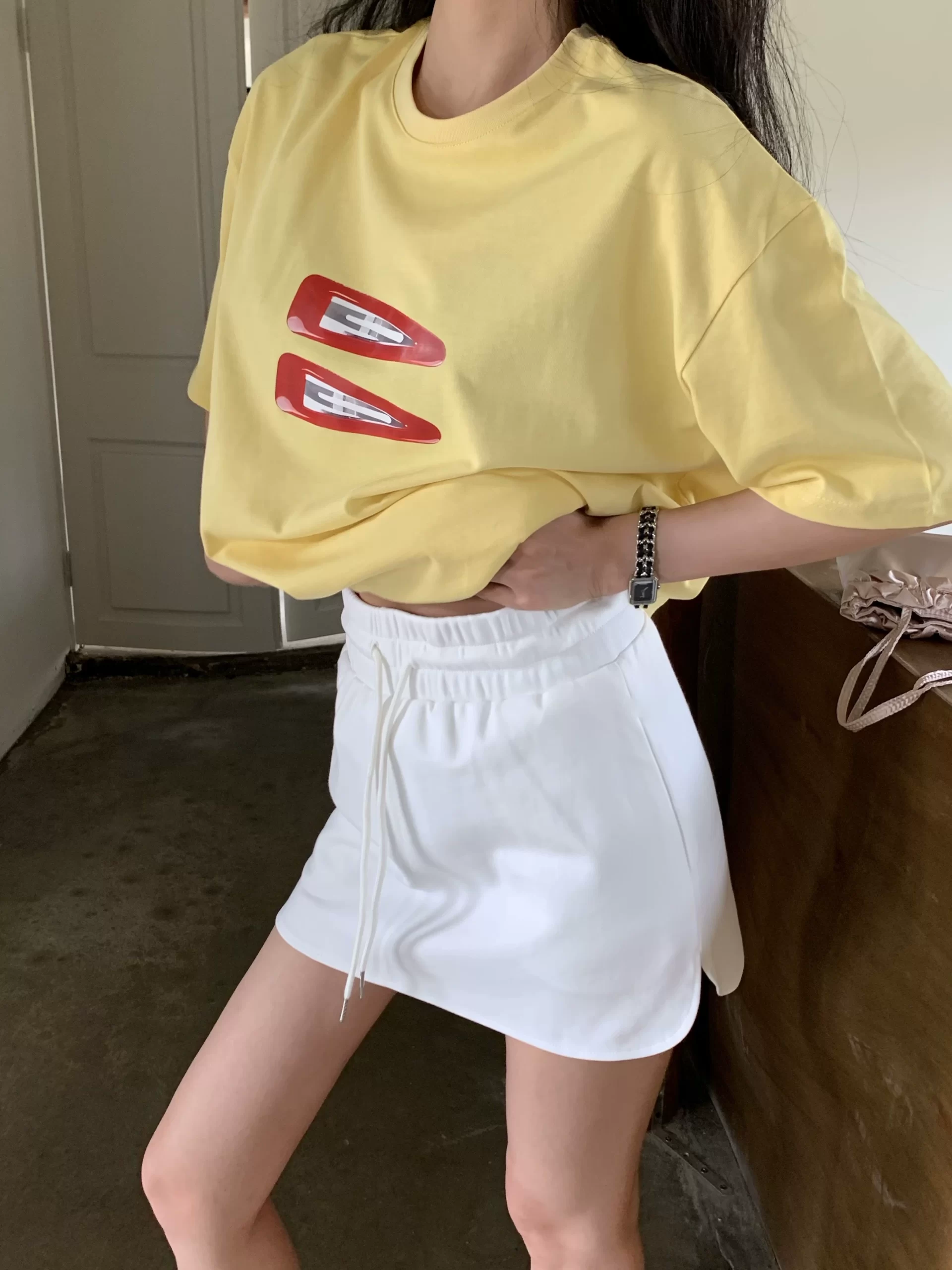 Korean style casual solid color summer simple short skirt with drawstring