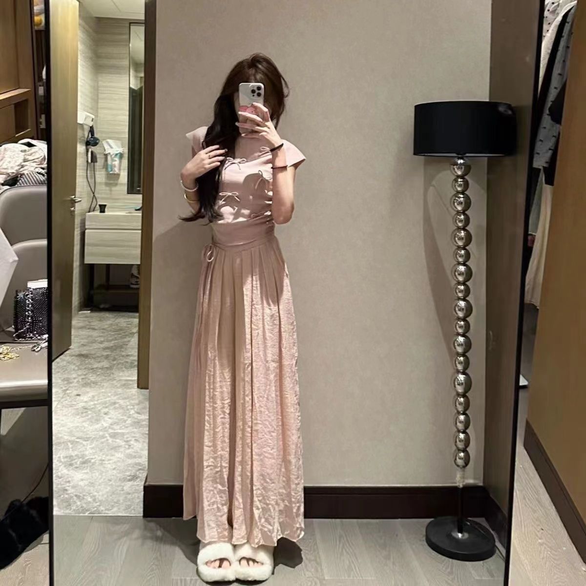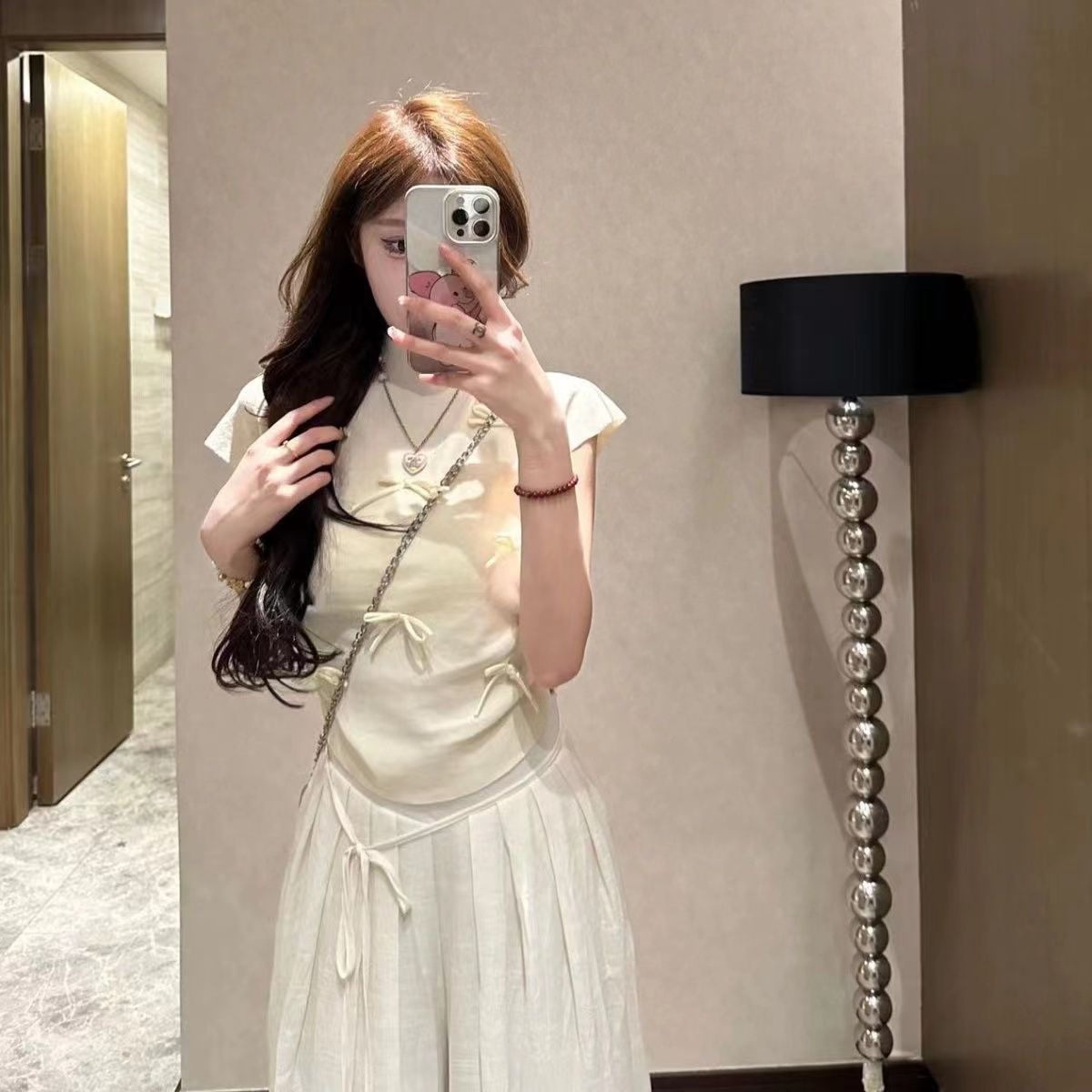 | nameOriginal | Korean Style Casual suit Women's Summer Casual Half-high Neck Bow Knitted Short-sleeved High Waist Wide-leg Two-piece Set |