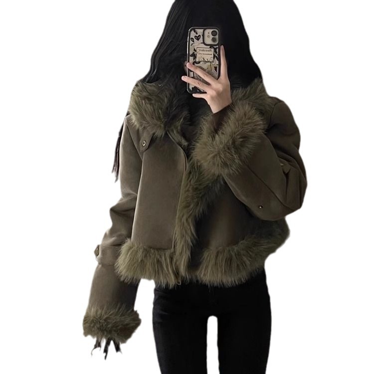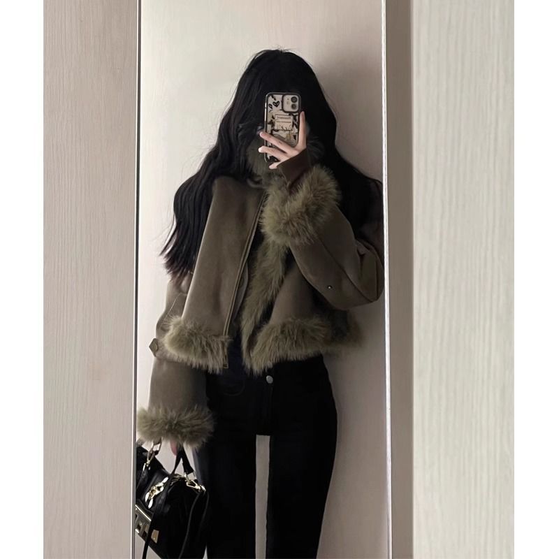 Korean style Chanel style suede coat women’s autumn and winter thickened small motorcycle coat