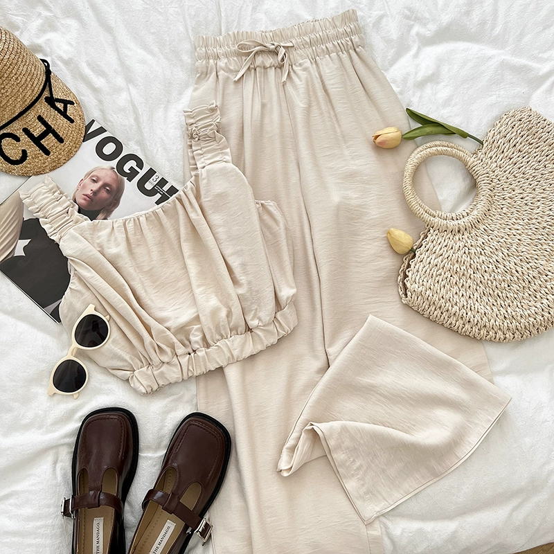 | nameOriginal | Korean style chic fungus short camisole + drawstring elastic waist wide leg pants casual pants two-piece set for women |