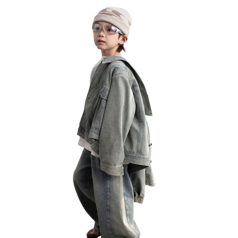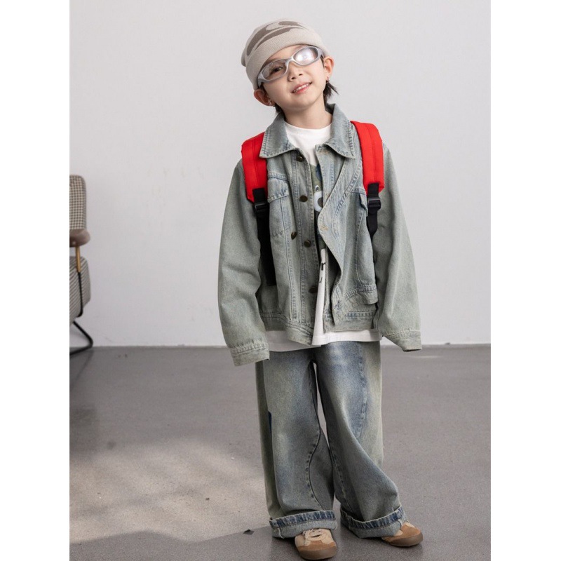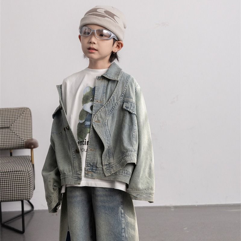 Korean style children’s 2024 New Spring boys’ double placket Denim coat children’s loose fashion coat fashion