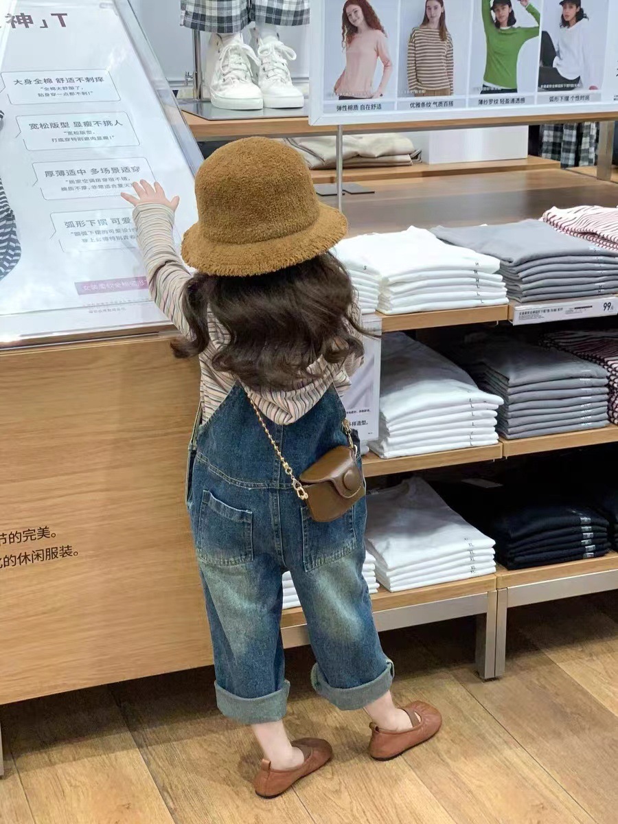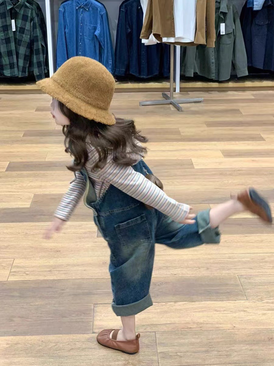 | nameOriginal | Korean style children's clothing 2024 Spring and Autumn New girls' striped hooded sweater loose Western style Denim suspender pants two-piece set |