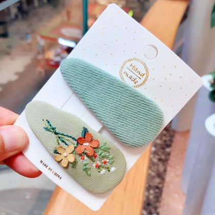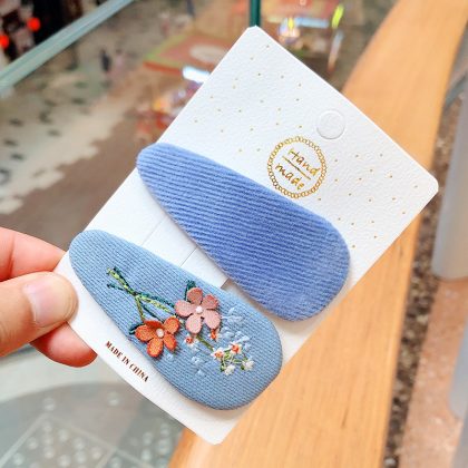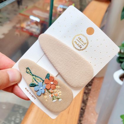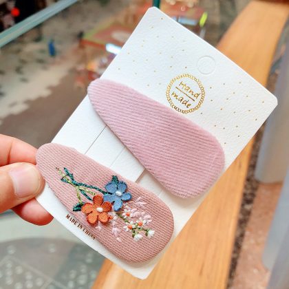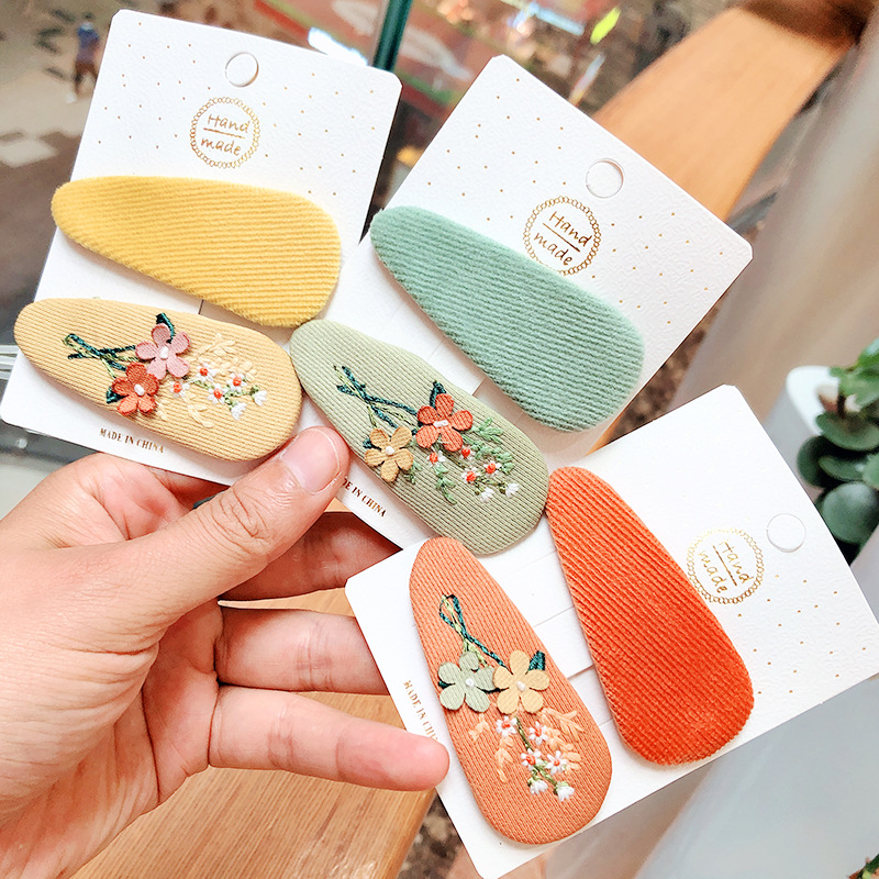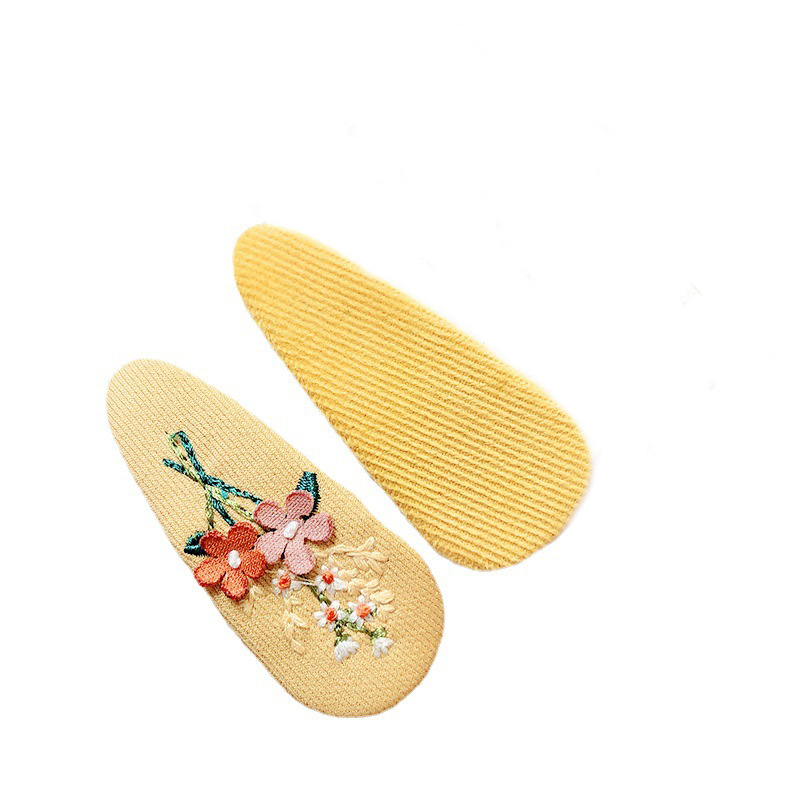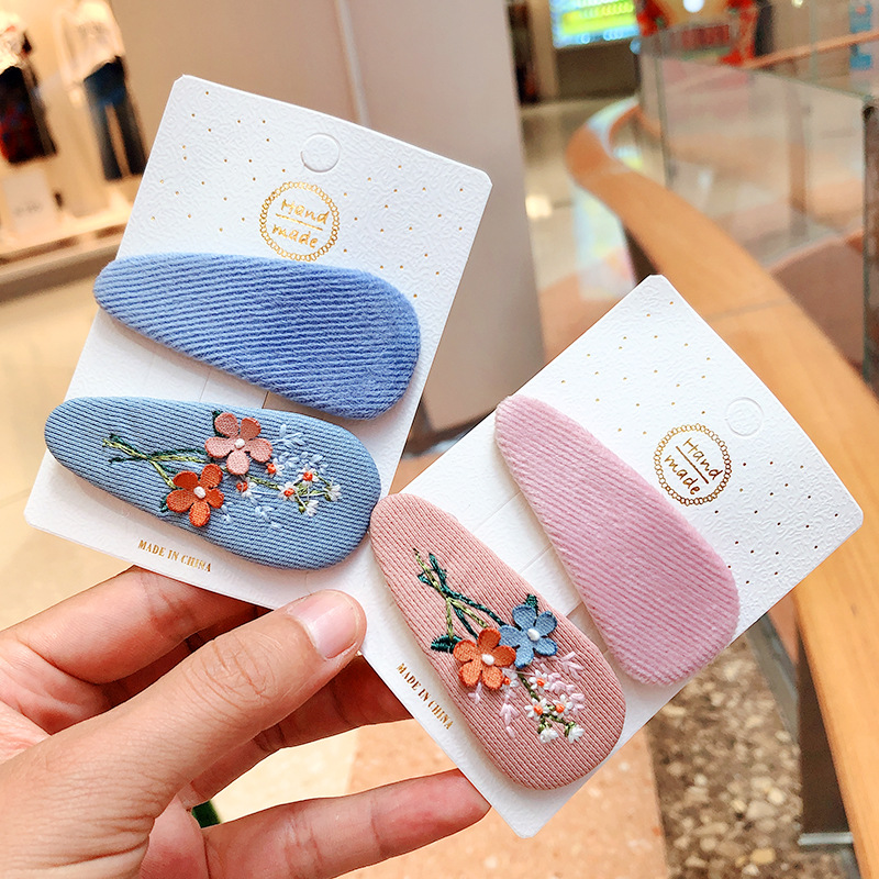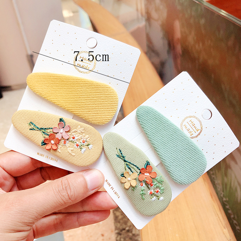 Korean Style Children’s Fabric Hair Clip Pure Cotton All-inclusive Fabric Hair Clip Hand-embroidered Small Flower Water Drop Baby Girl’s Bangs