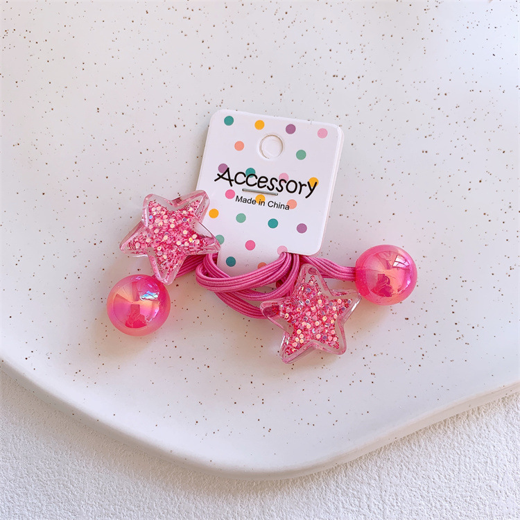 Korean style children’s hair accessories hair rope little girl’s shiny five-pointed star hair ring high horse tail long rubber band around hair rope