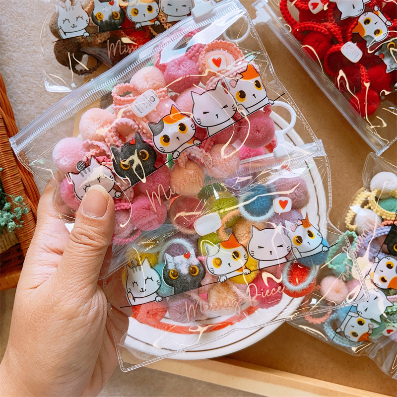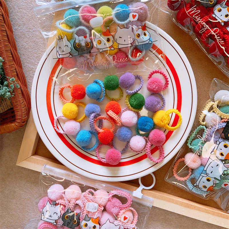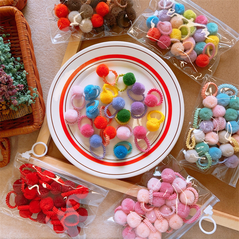 Korean style children’s hair tie rubber band plush ball Small size thumb ring 20 bagged head rope baby high elastic head rope