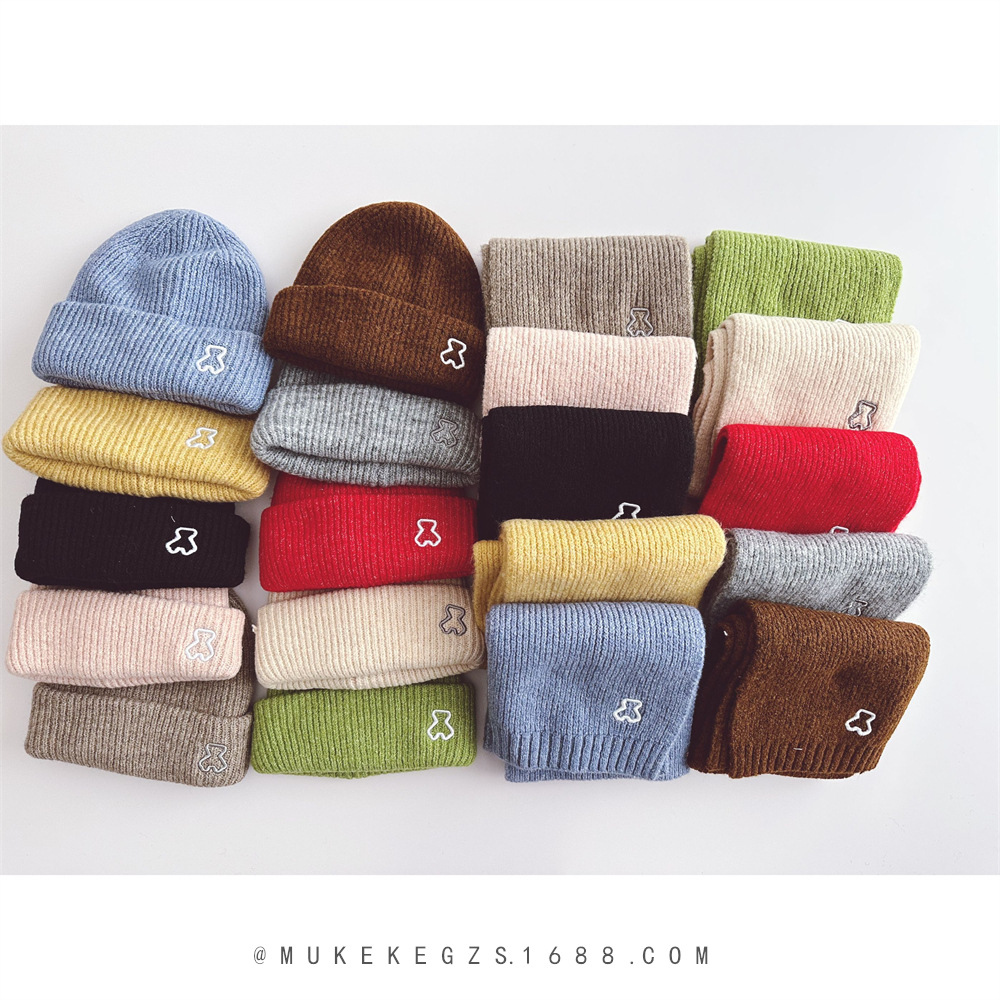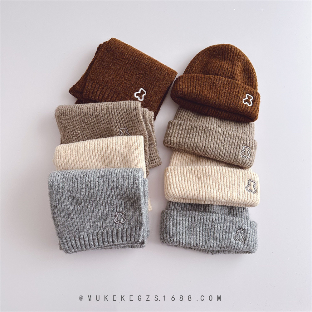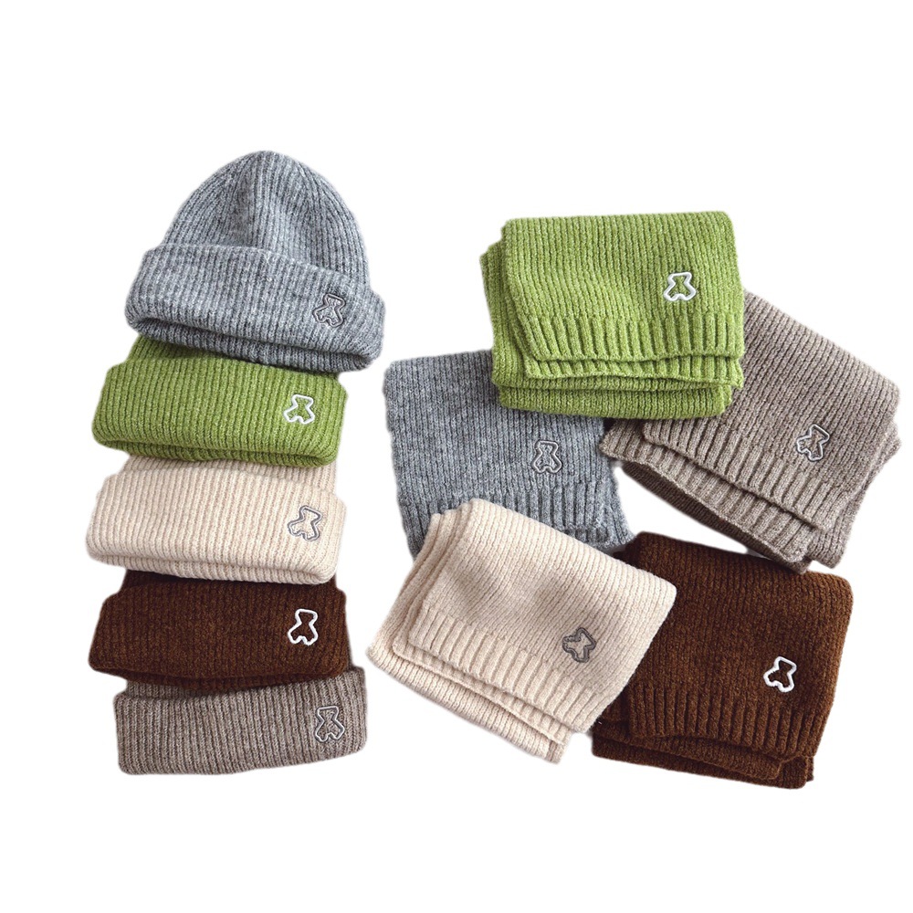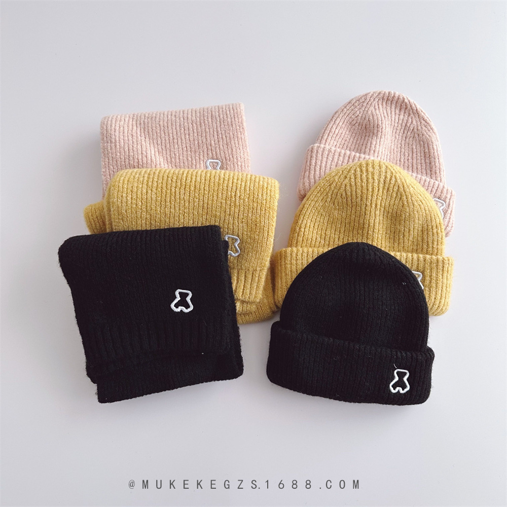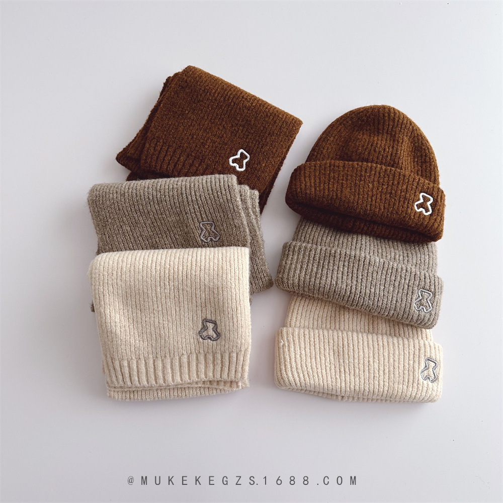 | nameOriginal | Korean style children's knitted hat scarf suit winter soft bear embroidery boys and girls warm wool hat scarf |