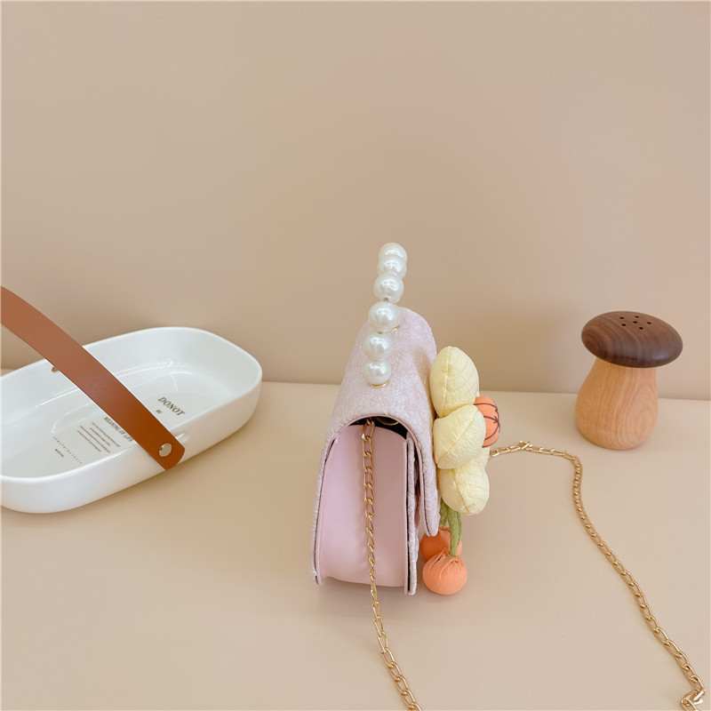 Korean style children’s Pearl handbag 2023 new shoulder bag cartoon cute flower coin purse women’s messenger bag