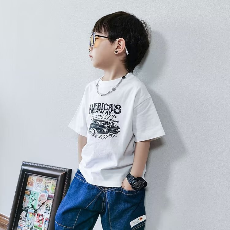 | nameOriginal | Korean Style Children's Wear Boys Short-sleeved T-shirt Trendy Brand Pure Cotton Spring and Summer New Loose Casual Mid-Big Children's Half-sleeved Top Trendy |