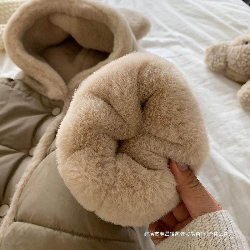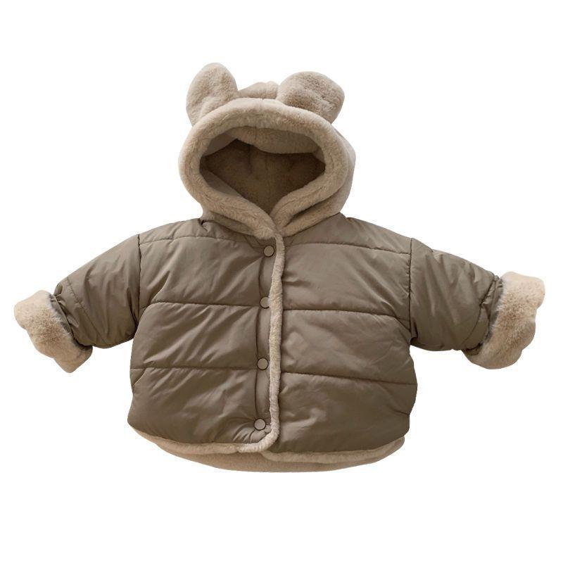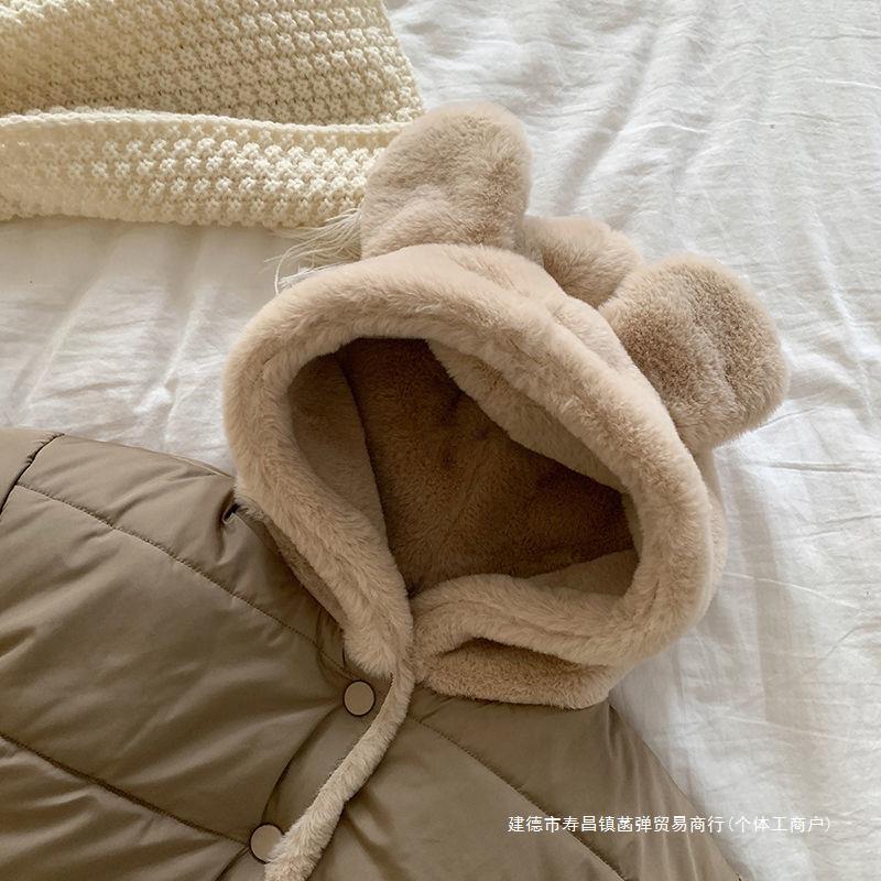 Korean Style Children’s Wear Children’s Unisex Thickened Solid Color Top Warm Hooded All-match Casual Trendy Bear Coat Winter