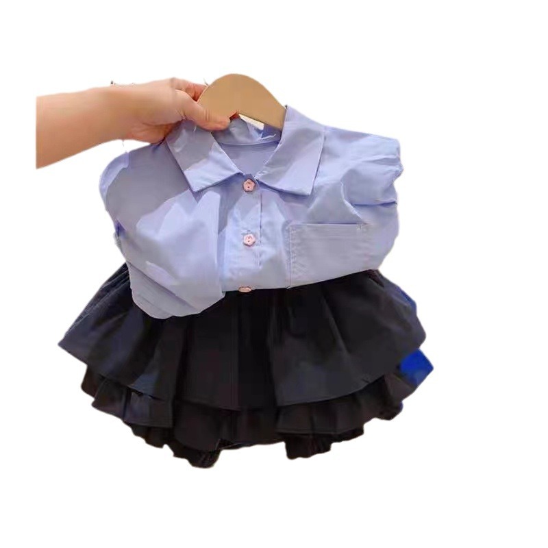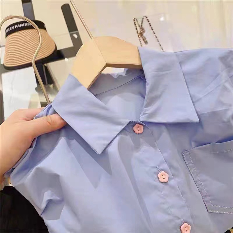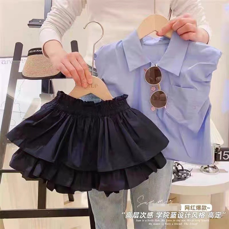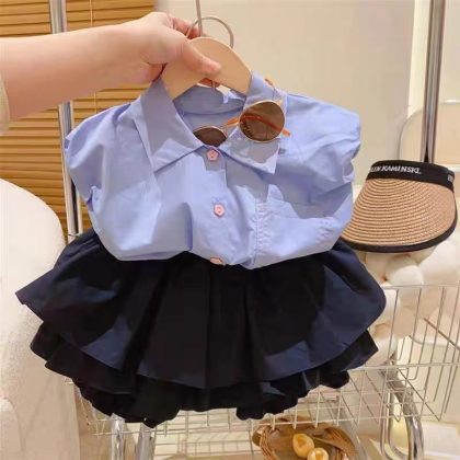 | nameOriginal | Korean Style Children's Wear Girls' Suit 2024 New Summer Children's Fashionable Blue Lasel Top Bud Shorts |