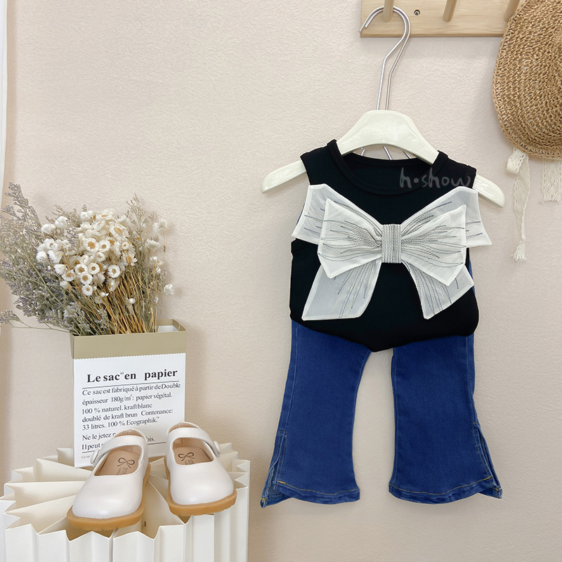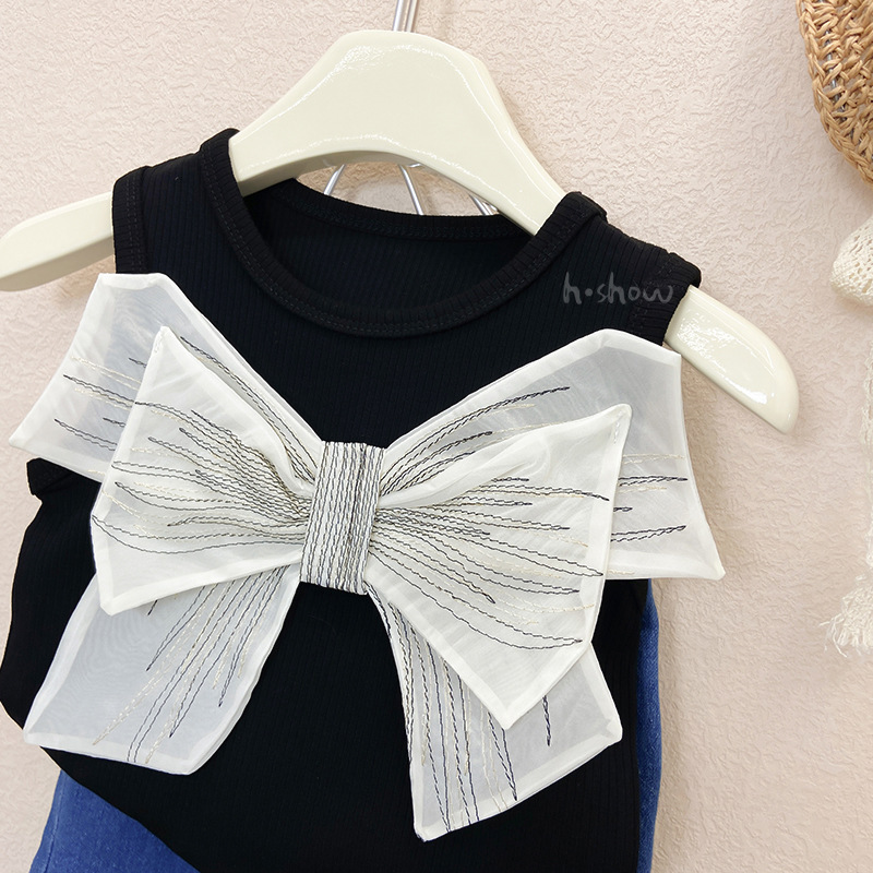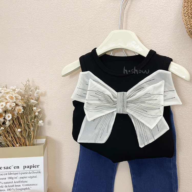 Korean Style Children’s Wear Summer New Girls’ Fashionable Big Bow Knitted Western Style All-match Sweet Vest Top 0082