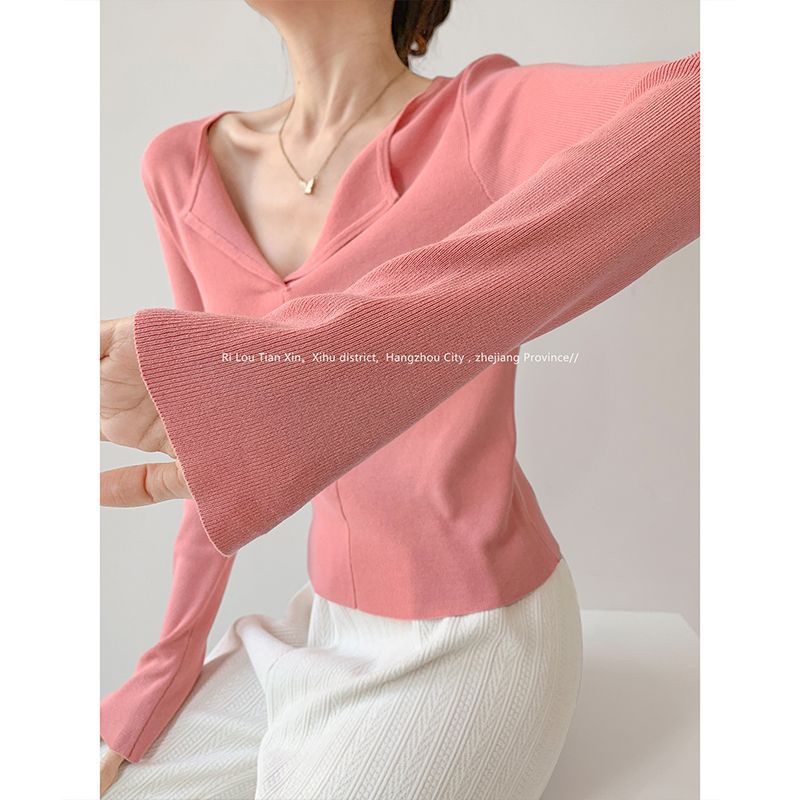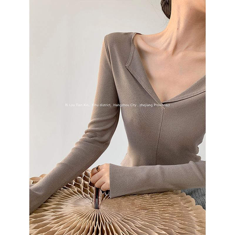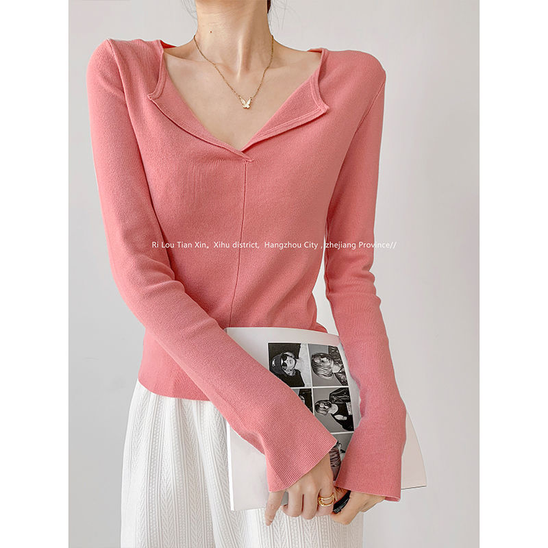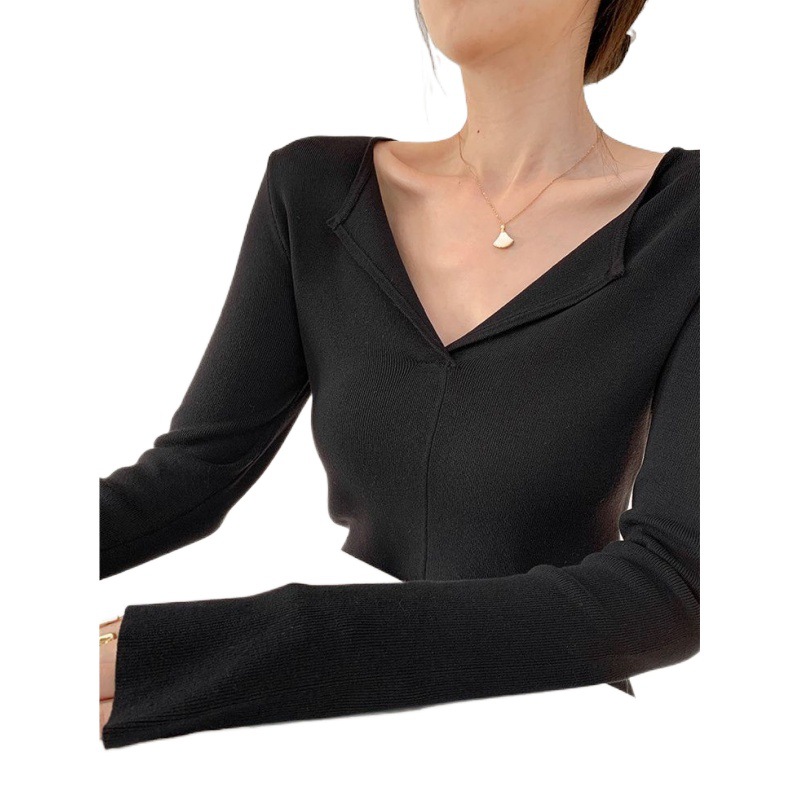 | nameOriginal | Korean Style Collar Knitted Sweater 2024 New Design Sense Double Collar Chic Early Autumn Top Slim Fit Base Shirt |