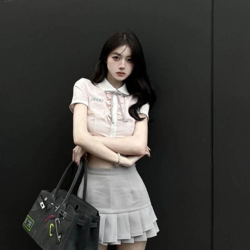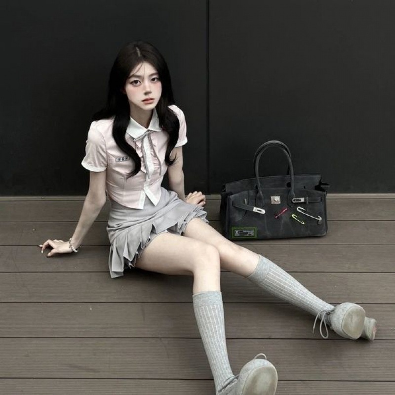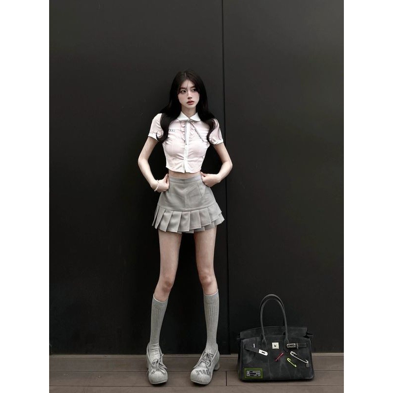 | nameOriginal | Korean Style College Style suit JK Uniform Girl's Pink Tight Waist Shirt Grey High Waist Pleated Skirt Hot Girl Two-Piece Set |