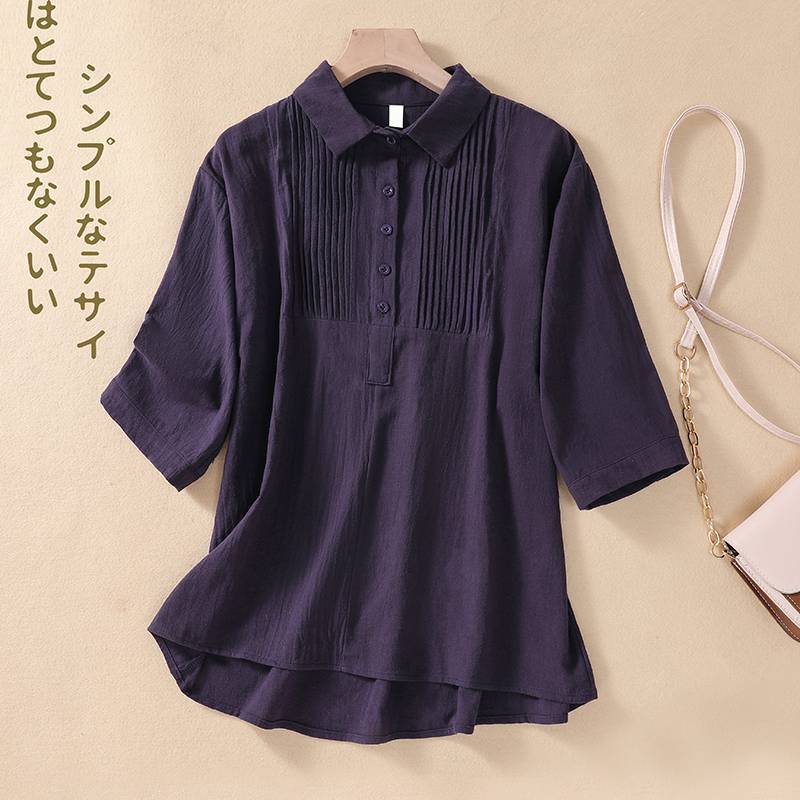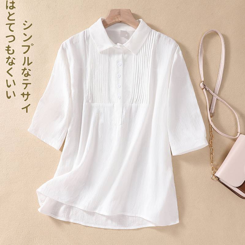 Korean-style Commuter Square Collar Organ Pleated Design Short-sleeved Shirt Literary Style Loose All-match Top for Women
