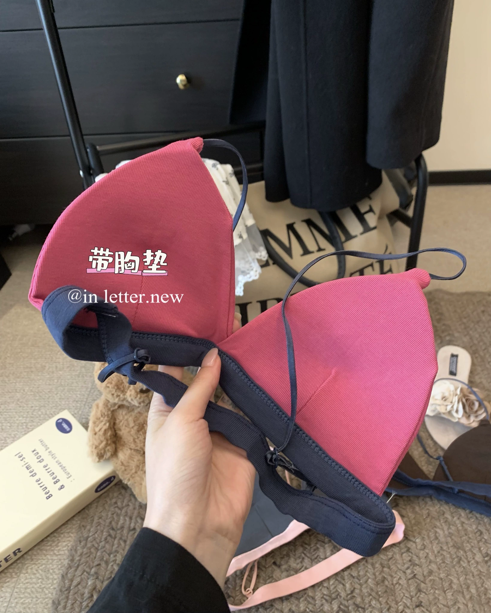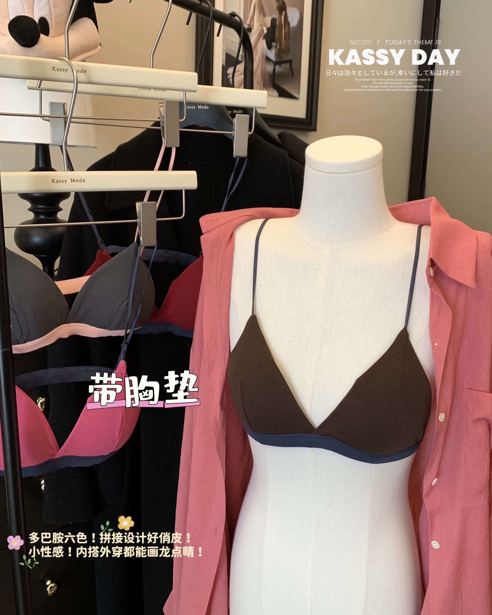 | nameOriginal | Korean style contrasting color sexy triangle cup girls bra summer spaghetti straps beautiful back design inner wear with padded bra |