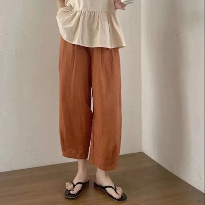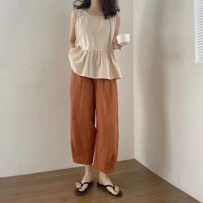 Korean style cotton and linen casual Japanese style nine-point pants two-piece set