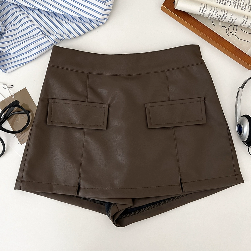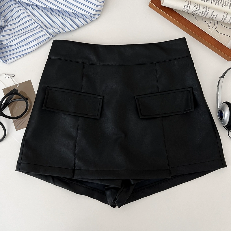 | nameOriginal | Korean style design, fashionable and versatile PU leather high-waisted slim skirt casual pants boot pants wide-leg pants for women in autumn and winter |
