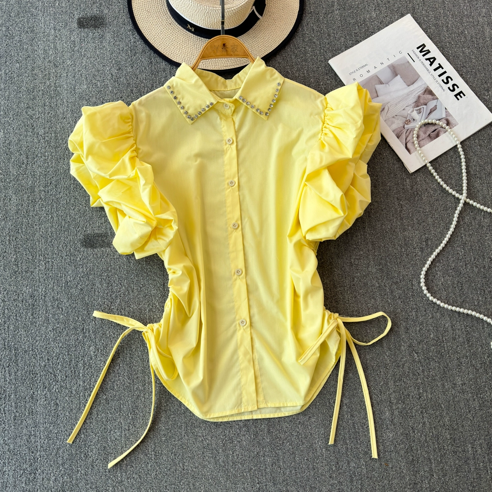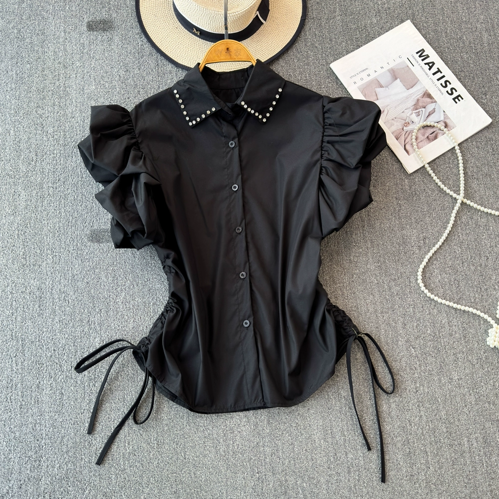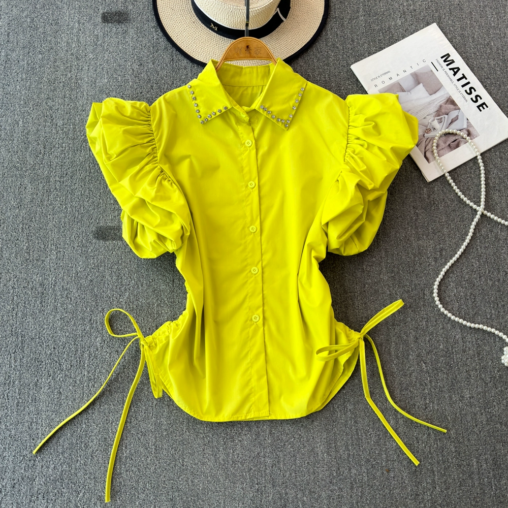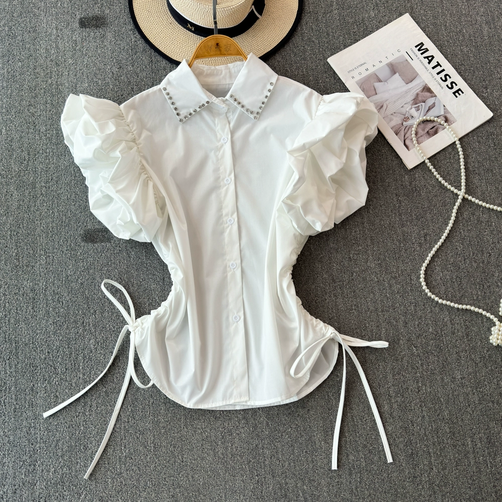 | nameOriginal | Korean style design niche flying sleeve shirt for women 2024 summer new style chic waist slimming short top trendy |