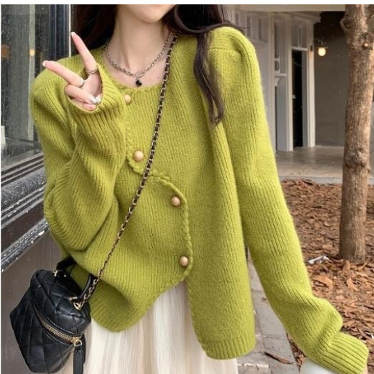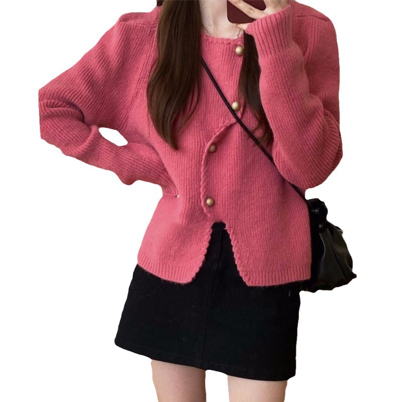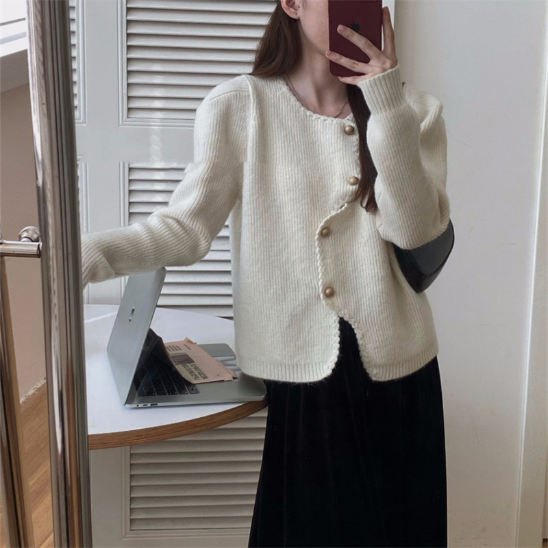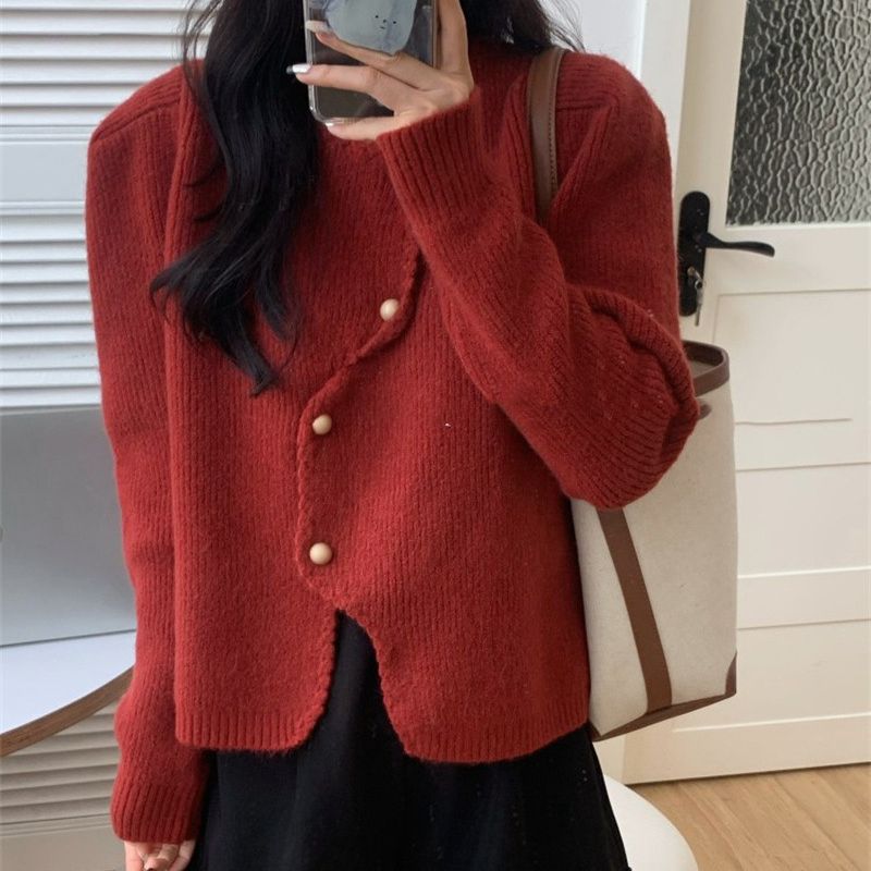 | nameOriginal | Korean Style Design Sense Irregular Button Round Neck Sweater Coat Women's Autumn and Winter New Commuter Sweater Top Trendy |