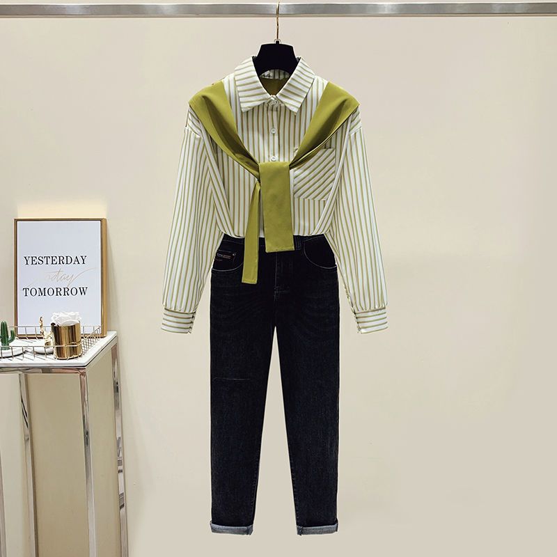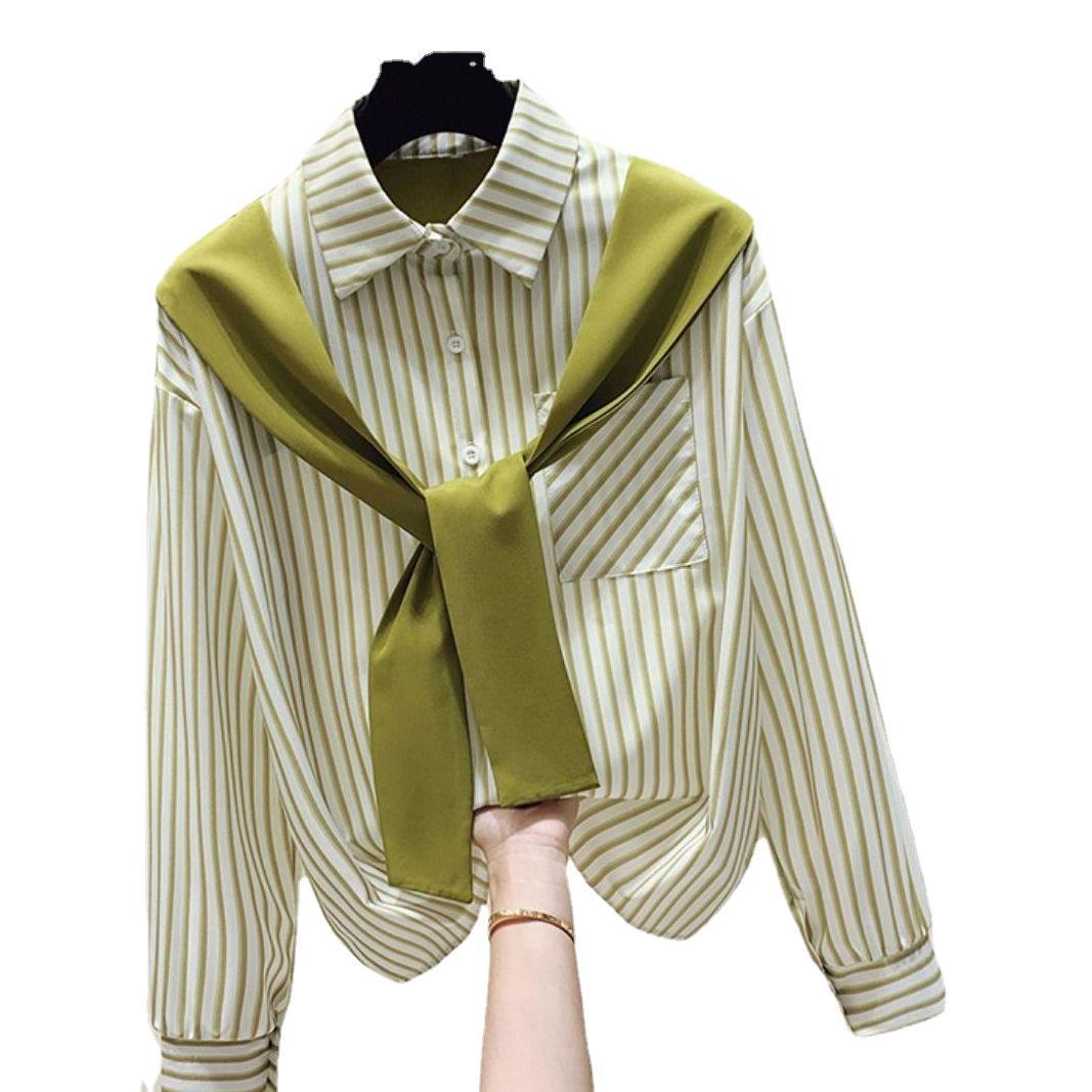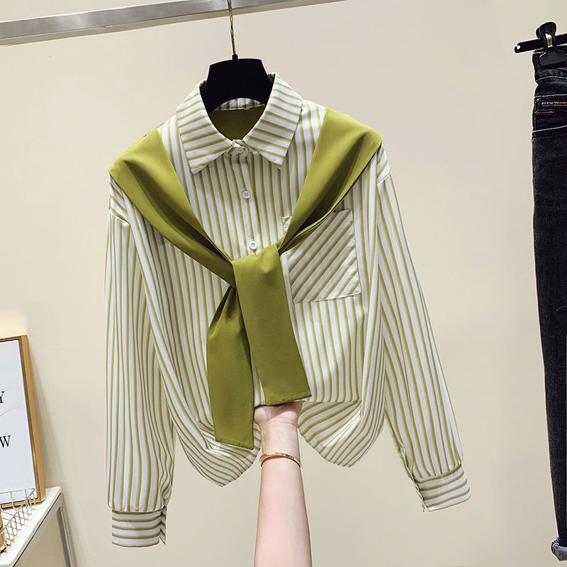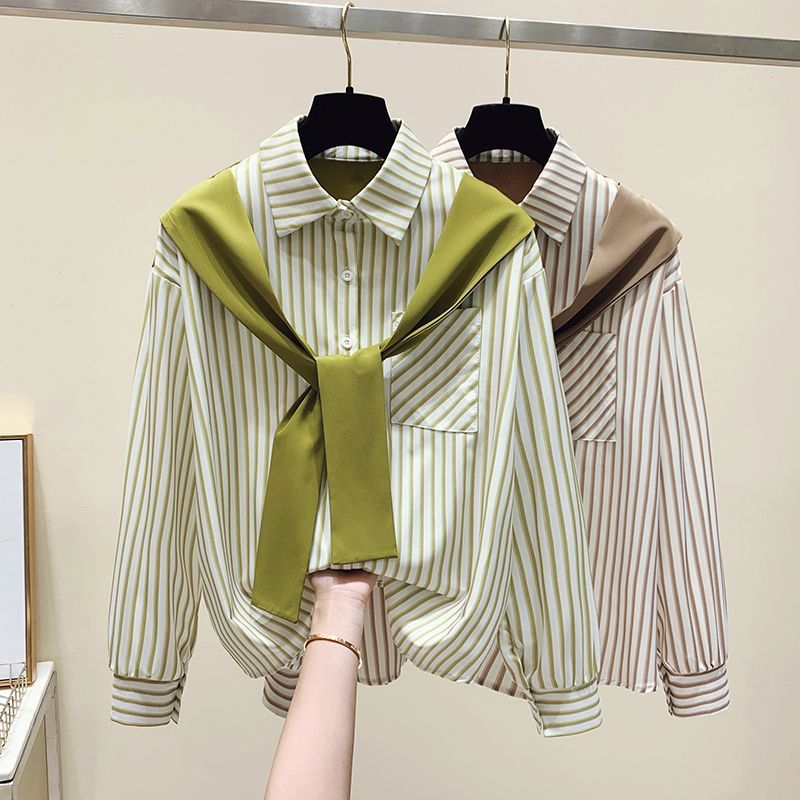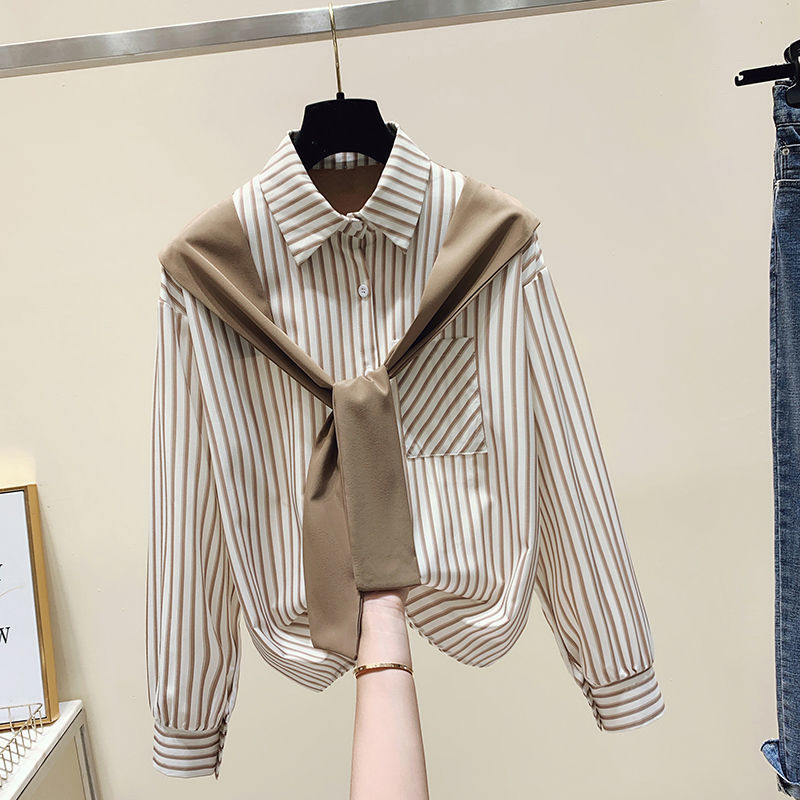 | nameOriginal | Korean Style Design Sense Niche Spring and Autumn Shawl Stitching Fake Two-piece Striped Long-sleeved All-match Loose Shirt Top for Women |