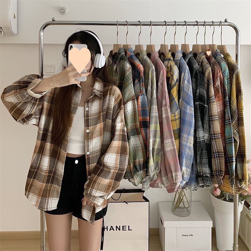 | nameOriginal | Korean Style Design Sense Shirt Women's 2023 Spring French Style Retro Loose Plaid Shirt Coat |