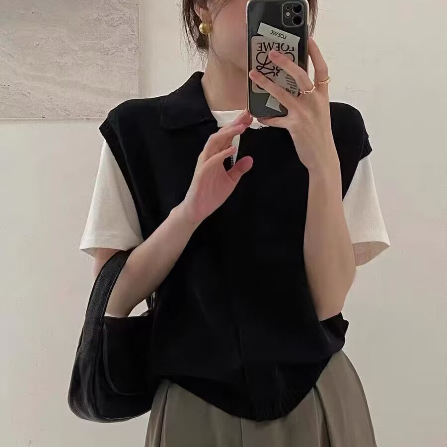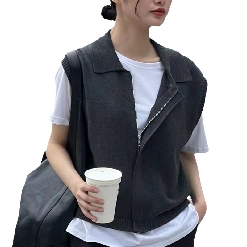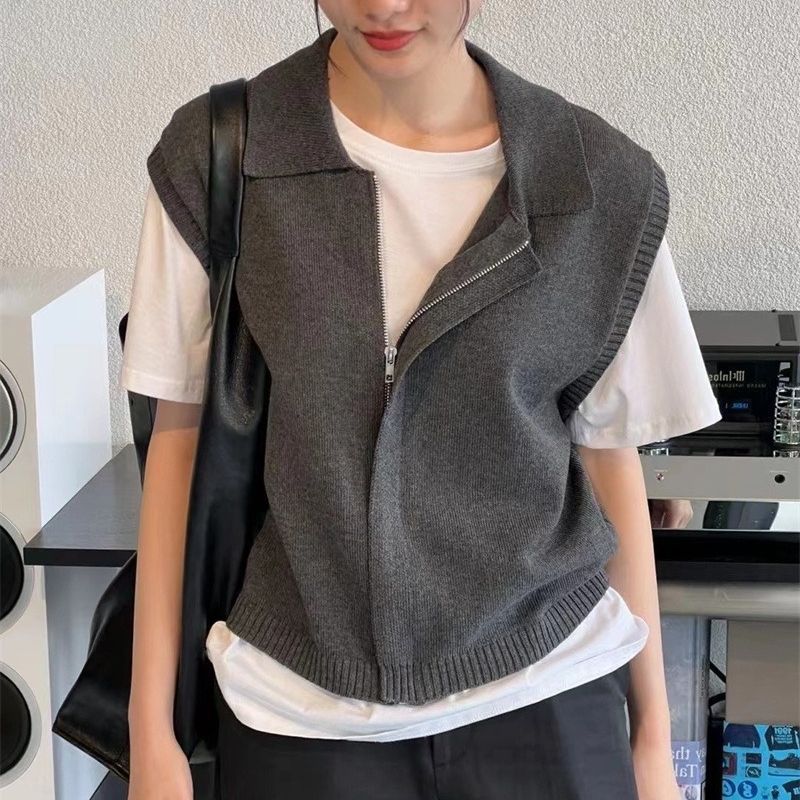 | nameOriginal | Korean Style Design Sense Zipper Lapel Sweater Vest Women's 2024 Autumn New Style Chic Outer Knitted Top |