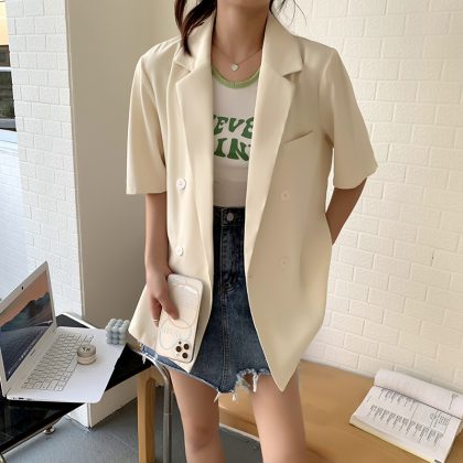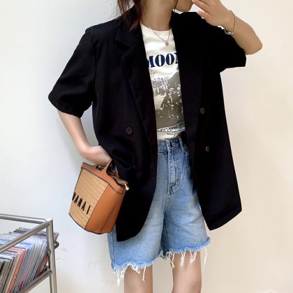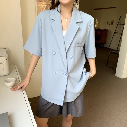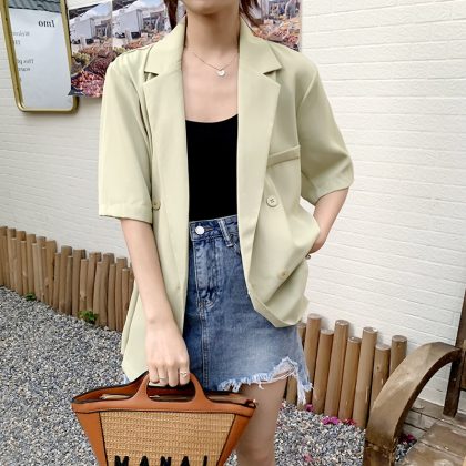 | nameOriginal | Korean Style Elegant Casual Short-sleeved Suit Jacket Women's 2024 Summer New Arrival Loose Slim-fit Suit Top for Petite |