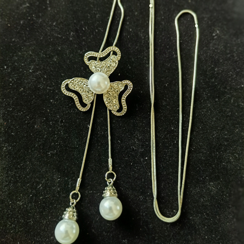 | nameOriginal | Korean Style Elegant Long Woolen Chain Necklace Women's High Sense Fashion All Match Tassel Pearl Clover Jewelry Pendant |