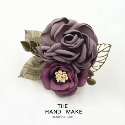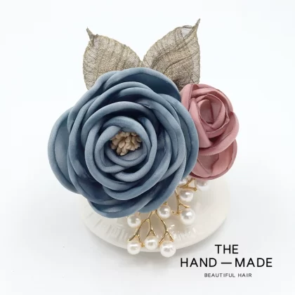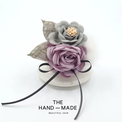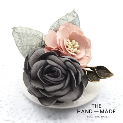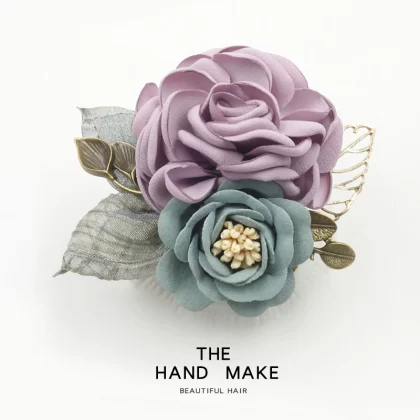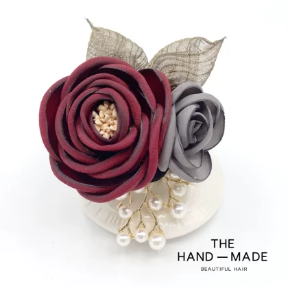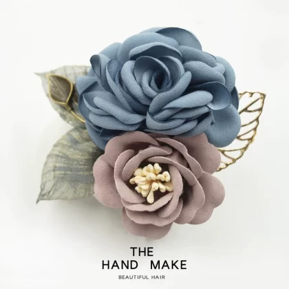 Korean style elegant silk scarf button jacket for women with fabric flowers