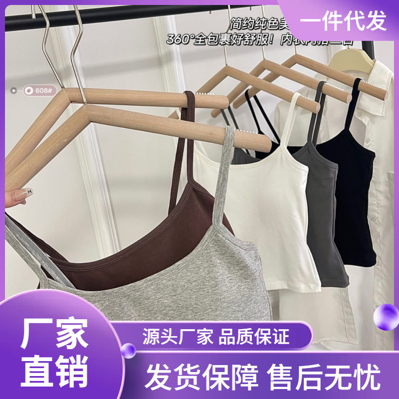 Korean Style Explosive Cotton Sling Beautiful Back Vest One-piece with Chest Pad Wrap Chest Color Outer Wear Base Short Top