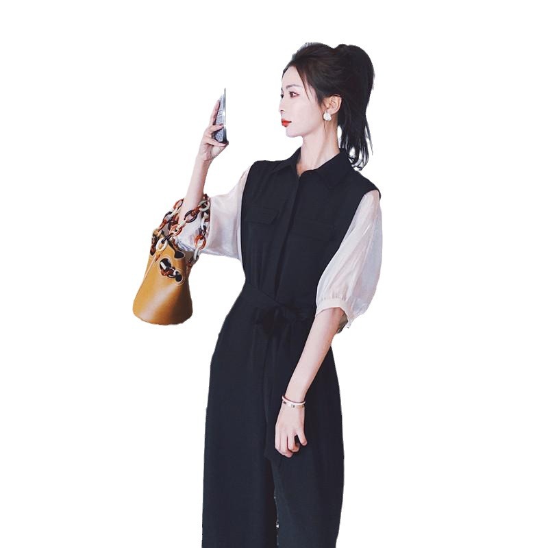 | nameOriginal | Korean-style Fake Two-piece Color One-piece Pants Women's 2023 Summer New Style Elegant High-grade Light Mature Slimming Workwear Wide-leg Pants |