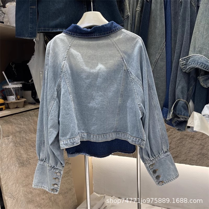 | nameOriginal | Korean style fake two-piece contrast color stitching Denim coat for women Spring and Autumn New Design casual short jacket fashionable top |