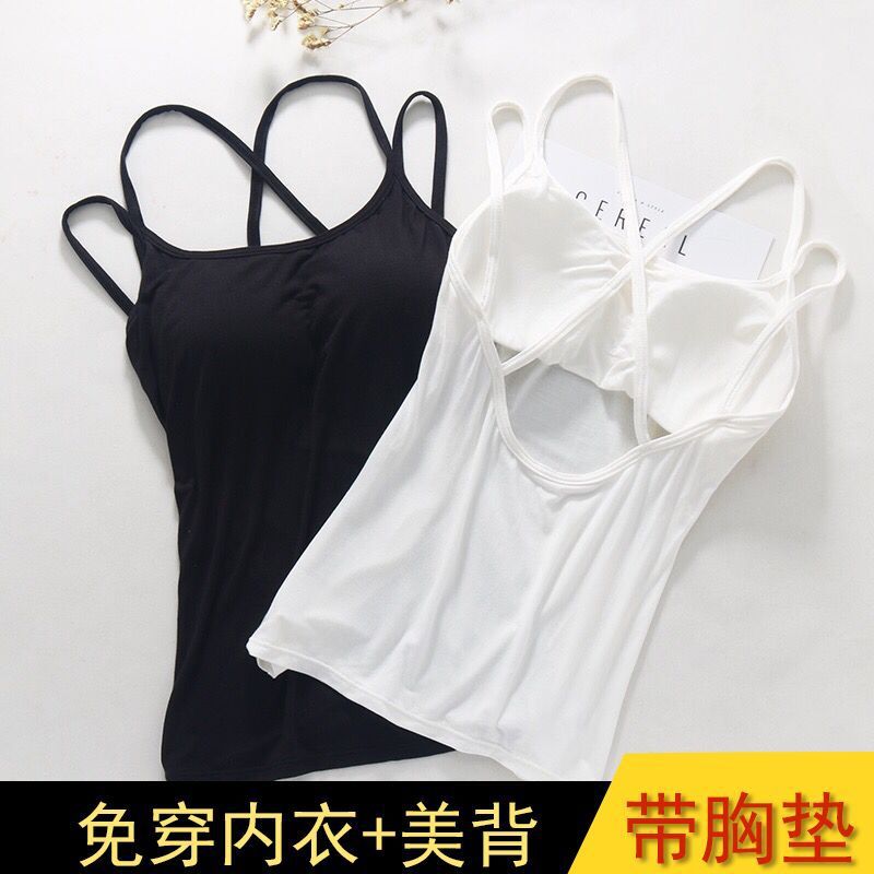 Korean Style Fashionable Cross Camisole Sexy Beautiful Strap Chest Pad Slim-fit Slimming Inner Wearing Outer Wearing Sleeveless Top for Women