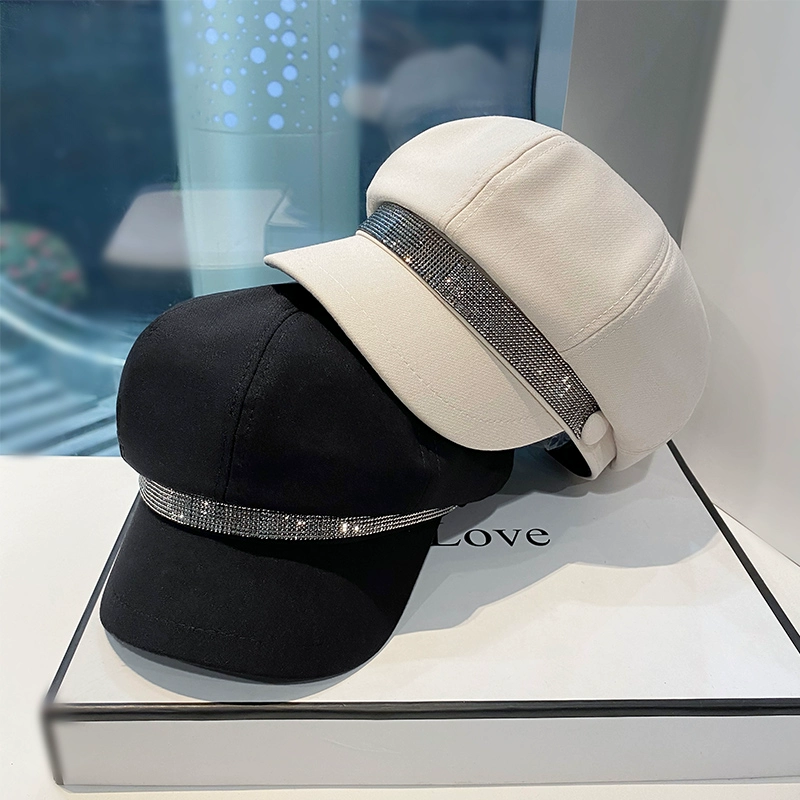 | nameOriginal | Korean style fashionable temperament rhinestone octagonal hat spring and autumn casual versatile duck tongue beret hat female retro painter hat |