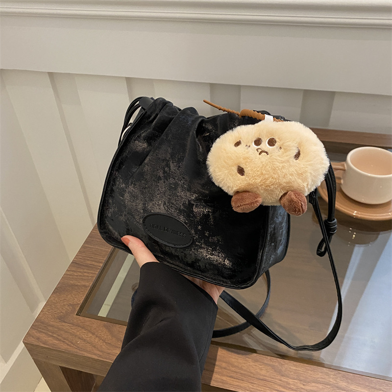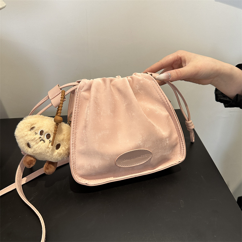 Korean Style Foreign Style Drawstring Small Bag Women’s 2024 Spring New All-match Ins Shoulder Bag Casual Bucket Bag