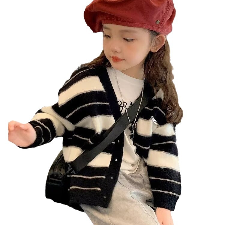 | nameOriginal | Korean Style Foreign Style Middle and Large Children's Knitted Collar Cardigan Jacket Spring and Autumn Children's Top Middle and Large Children's Wear All-match Black and White Stripes |